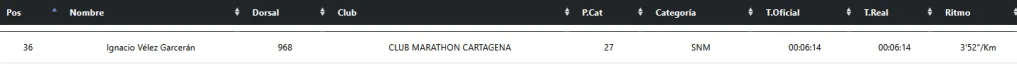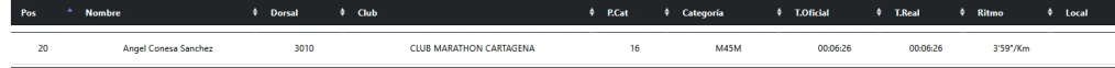 «Pao, que ya estoy llegando, que ya puedes echar el arroz». Y luego está Ángel Conesa Sánchez, que cerró su milla en 6:26. Puesto 16 en la M45. Y aquí viene lo bonito del asunto, porque el ritmo de Ángel fue de 3’59» por kilómetro. ¡Bajó de cuatro minutos!