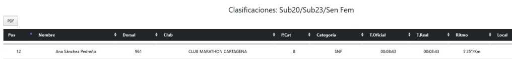 Y en la distancia reina, los 42 kilómetros y una propina de 19500 centímetros de sufrimiento, José Miguel Navarro firmó un excelente 3:43:59. José Ramón Camero se coló por los pelos en el club sub-4 con un 3:59:53, ¡olé ahí! Cerrando la expedición maratoniana, Armando Mayordomo completó la prueba en 4:06:31, un tiempo que a un servidor le resulta inquietantemente familiar (mi personal best es 4:06:19, pero tenía 18 años). Quizá el universo me manda señales… Lo mismo el año que viene me apunto a la maratón de Murcia, con bula o sin ella.