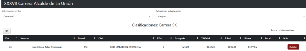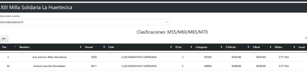 Luisa corrió el 10K, Camero la acompañó hasta la meta, la despidió con un besico y le dijo: «Ahora vuelvo». Y volvió con otro maratón tachado de la lista, y debe estar ya en los 60, pero sospecho que no lleva la cuenta… En el 10K, Daniel Sánchez (padre) cruzó la línea de meta en 59:25, seguido de Luisa María Marín con 1:00:34. Cerrando la expedición peralica, los hermanos Lacárcel Wandosell —José y Alfonso— entraron juntos, con idéntico tiempo de 1:05:15, demostrando que la sangre tira y que cuando uno aprieta el otro no se queda atrás.
