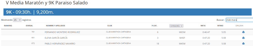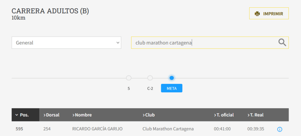 - XXXIII Media Maratón y 10K Ciudad de Cartagena Memorial «Gregorio Lorente Rosas»por Club Marathon Cartagena