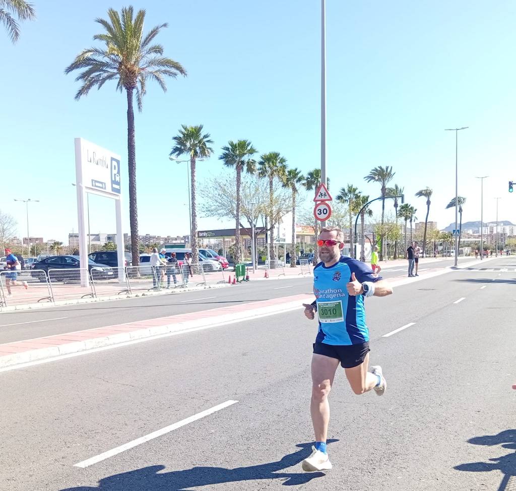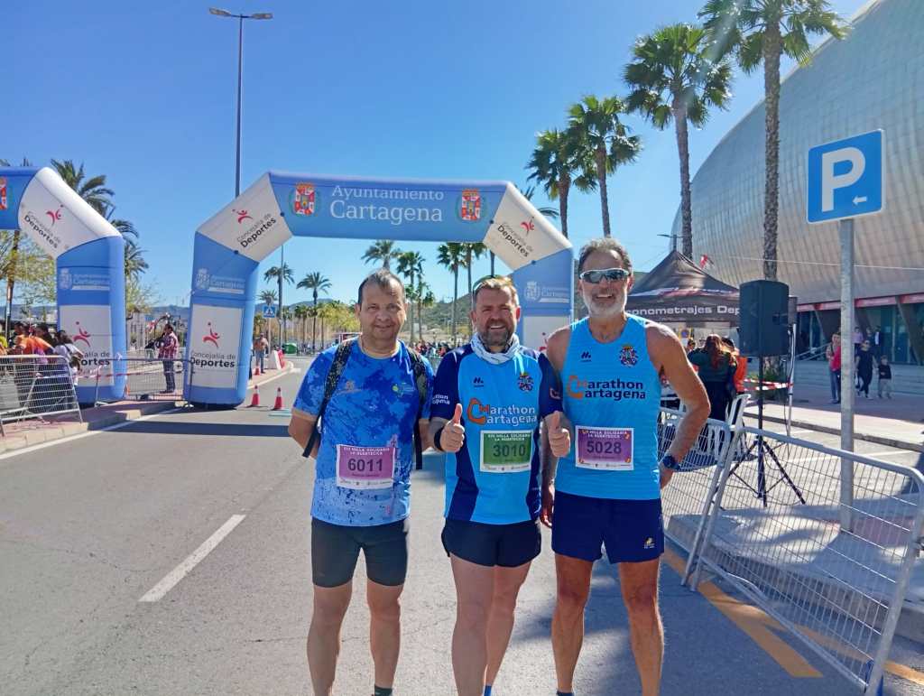 Los nuestros cubrieron las tres distancias —maratón, media maratón y 10K— en un recorrido completamente llano que partía del Ayuntamiento y culminaba a los pies de la Catedral, sede de la Diócesis de… ejem… Cartagena desde 1291. Una catedral con bula papal auténtica, la del Papa Paulo II de 1465, así que técnicamente los corredores que cruzaron la meta tienen indulgencia plenaria. O deberían tenerla. El chip no te lo sellan como en el Camino de Santiago, pero a cambio te dan una medalla de finisher que pesa lo suyo y sirve igual para presumir con los amigos.