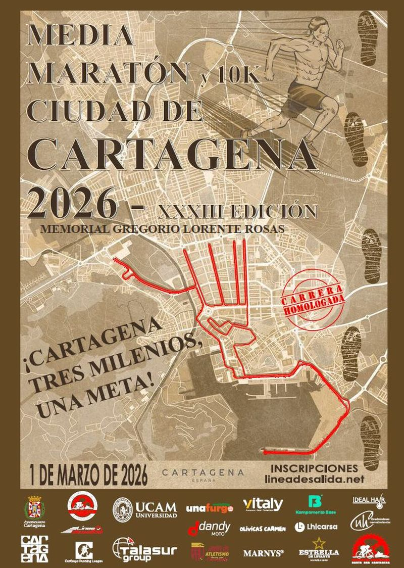 - XXXIII Media Maratón y 10K Ciudad de Cartagena Memorial «Gregorio Lorente Rosas»por Club Marathon Cartagena