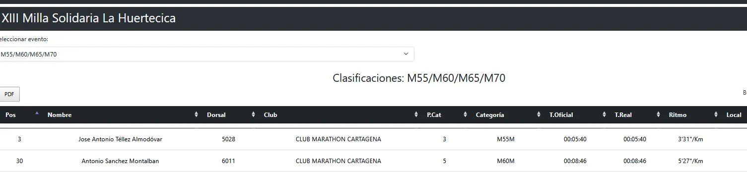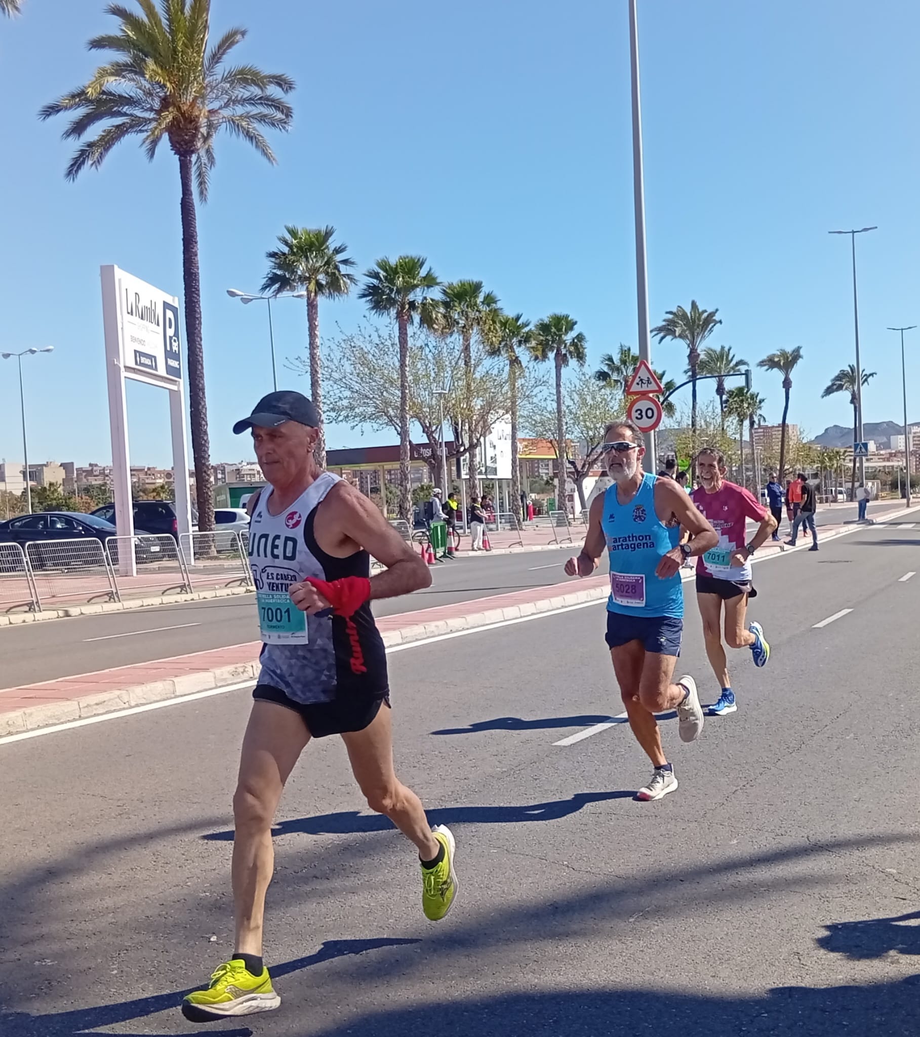 José Miguel Navarro-Azorín cruzó meta en 1:38:08, Fernando Daniel Quesada Pereira en 1:44:32, Ignacio Vélez Garcerán en 1:51:10, nuestro alemán favorito, Reiner Thomas, en 2:08:20, Alfonso Martínez Martínez en 2:20:16 y Miguel Perez Gracia en 2:30:09. Todos llegaron enteros. Y todos con una historia que contar sobre lo que es correr cuando el viento empuja, frena, zarandea y te trata, en fin, como si le debieras dinero.