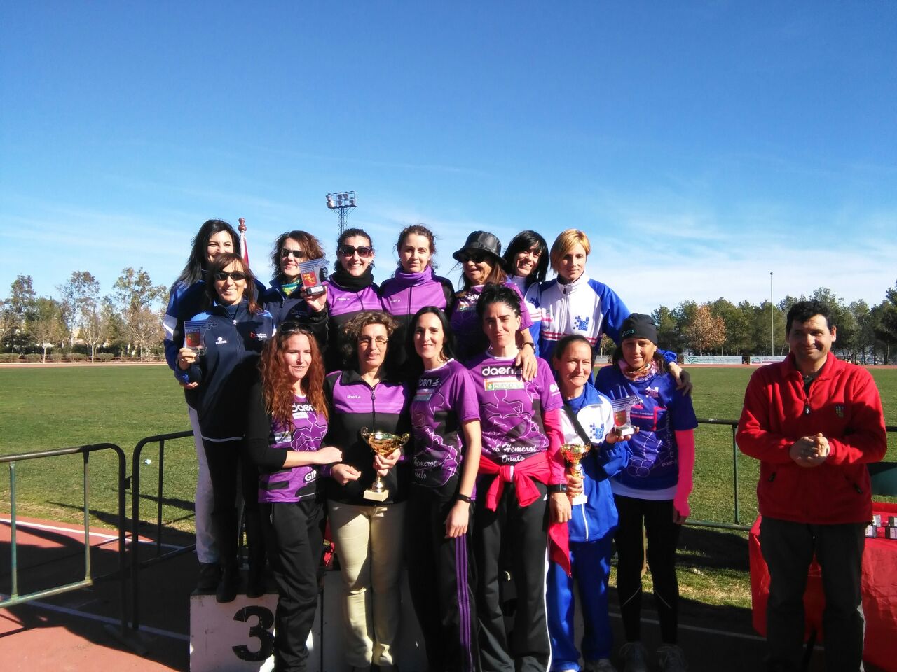 Juana Carrión Pujante fue 2ª veterana C, seguida por Karina Larraz y Toñi Asensio López (1ª veterana E), terminando terceras por equipo.