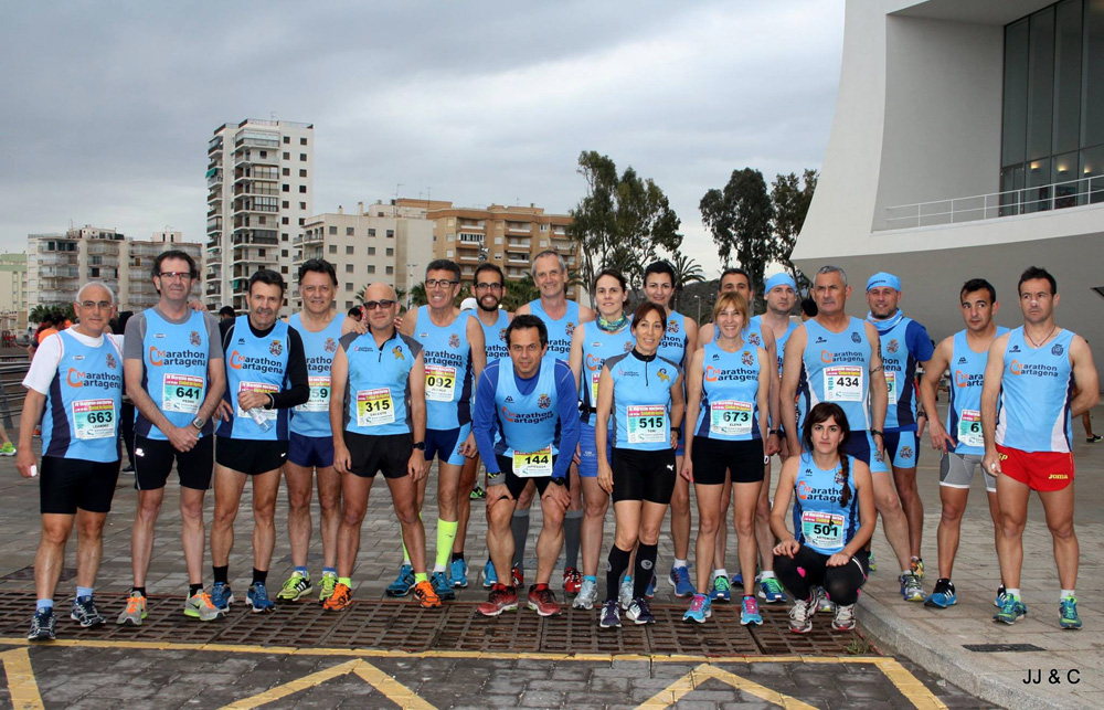 Presencia masiva de atletas del club Marathón Cartagena en la IV Media Marathón Nocturna y Carrera 10 Km. de Águilas (Murcia), disputada el 11 de abril de 2015.