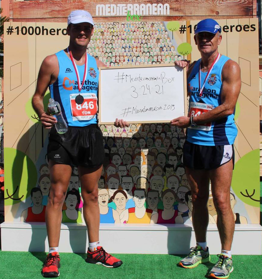 IMG_6382Grandes éxitos para el club Marathón Cartagena en la prueba reina de Marathón con cuatro puestos de pódium. Los maratonianos fueron Óscar Latorre Conesa (1º veterano A y 5º de la general, con MMP con 2:47:17), Antonio Quiles Mateo (2º júnior), Antonio Quiles Cantero (2º veterano E), José Ramón Camero Fuentes, Antonio Aledo López, Juan Luis Egea Celdrán (2º veterano G), Jorge García Sánchez, nuestra única atleta, Laura Jiménez Andújar, rozando el pódium pese a reservarse para Valencia (4ª senior), Emilio Conesa Martínez, Marcos José Segura Rosique, Juanjo Ruiz de Almirón, Ricardo Santiago Vázquez, Francisco de Asís Gálvez Marín y Antonio Sánchez Montalbán.
