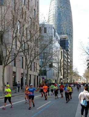 La foto de Maria del Mar debe ser en el km. 30 más o menos y se le ve muy alegre y sin acusar el famoso muro que en Barcelona es La Torre Agbar con sus dos