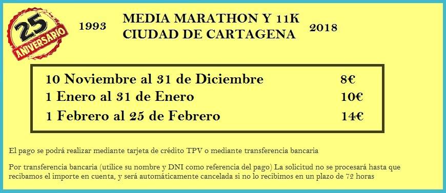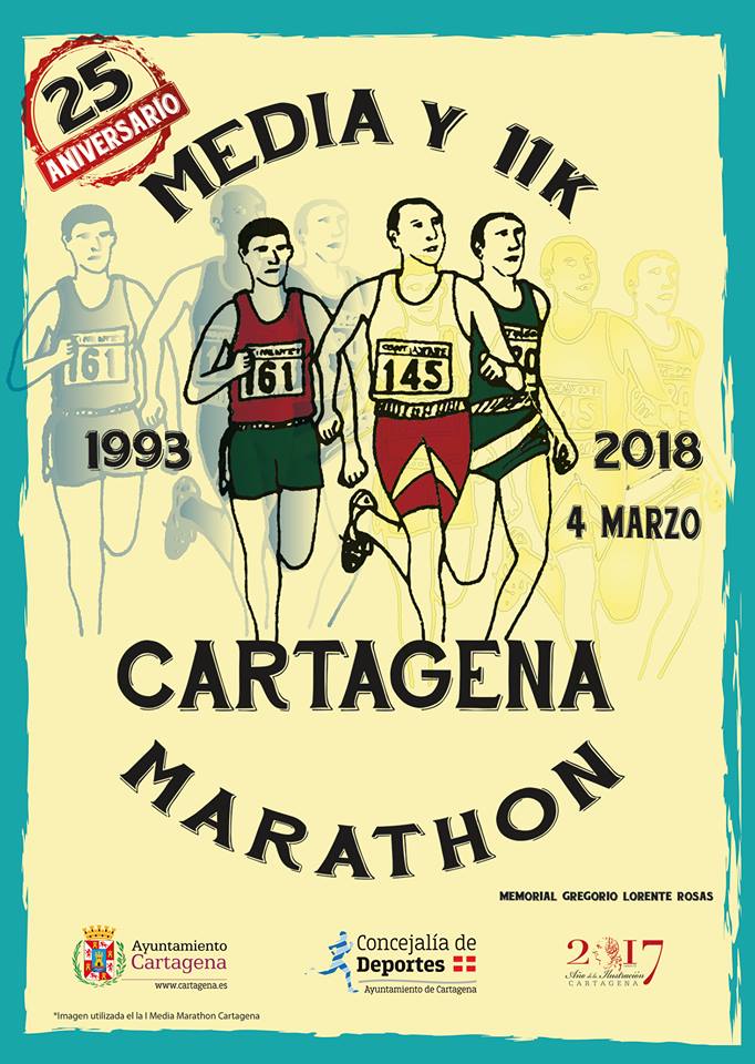 La XXV Media Marathón de Cartagena y la Carrera 11 Km. se disputarán el domingo 4 de marzo de 2018.