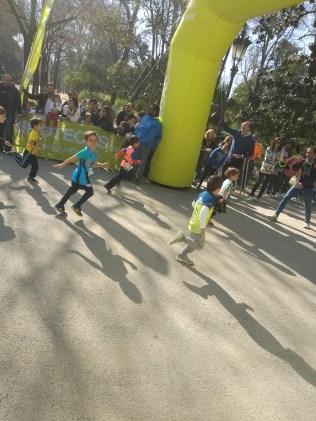 Previa a la Marathón de Sevilla se disputaba la «minimarathón» para los más pequeños, corriendo los nietos de Antonio Vera Oliver, Dani y Marc, con la camiseta «peralica».