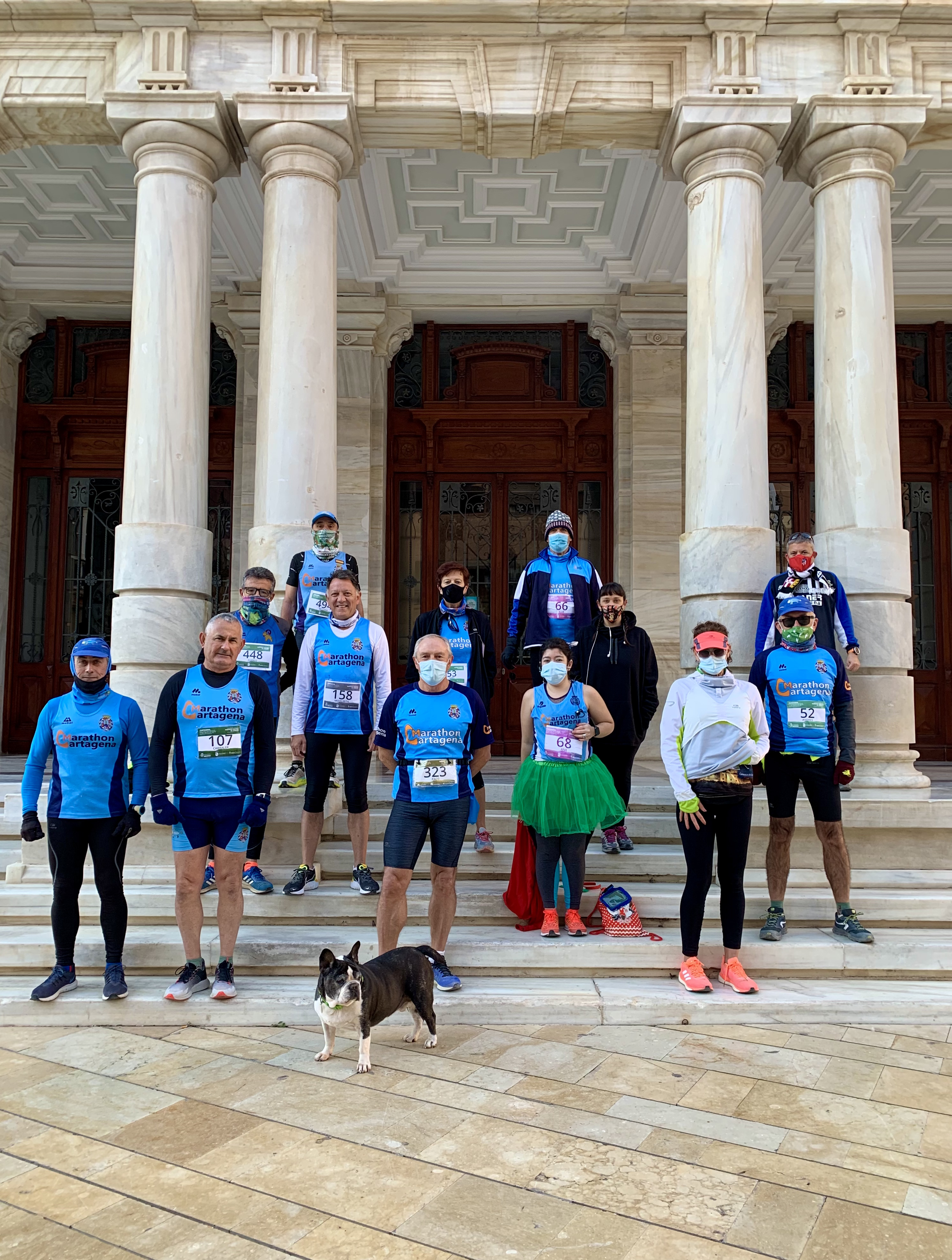 Coincidiendo con la Carrera Virtual «Muévete contra el Cáncer», un grupo de atletas del club Marathón Cartagena realizó el recorrido tradicional (5,2 Km.) de la San Silvestre de Cartagena, con salida y llegada en el Palacio Consistorial, a las 9 h. del 27 de diciembre de 2020, en un día frío y soleado.