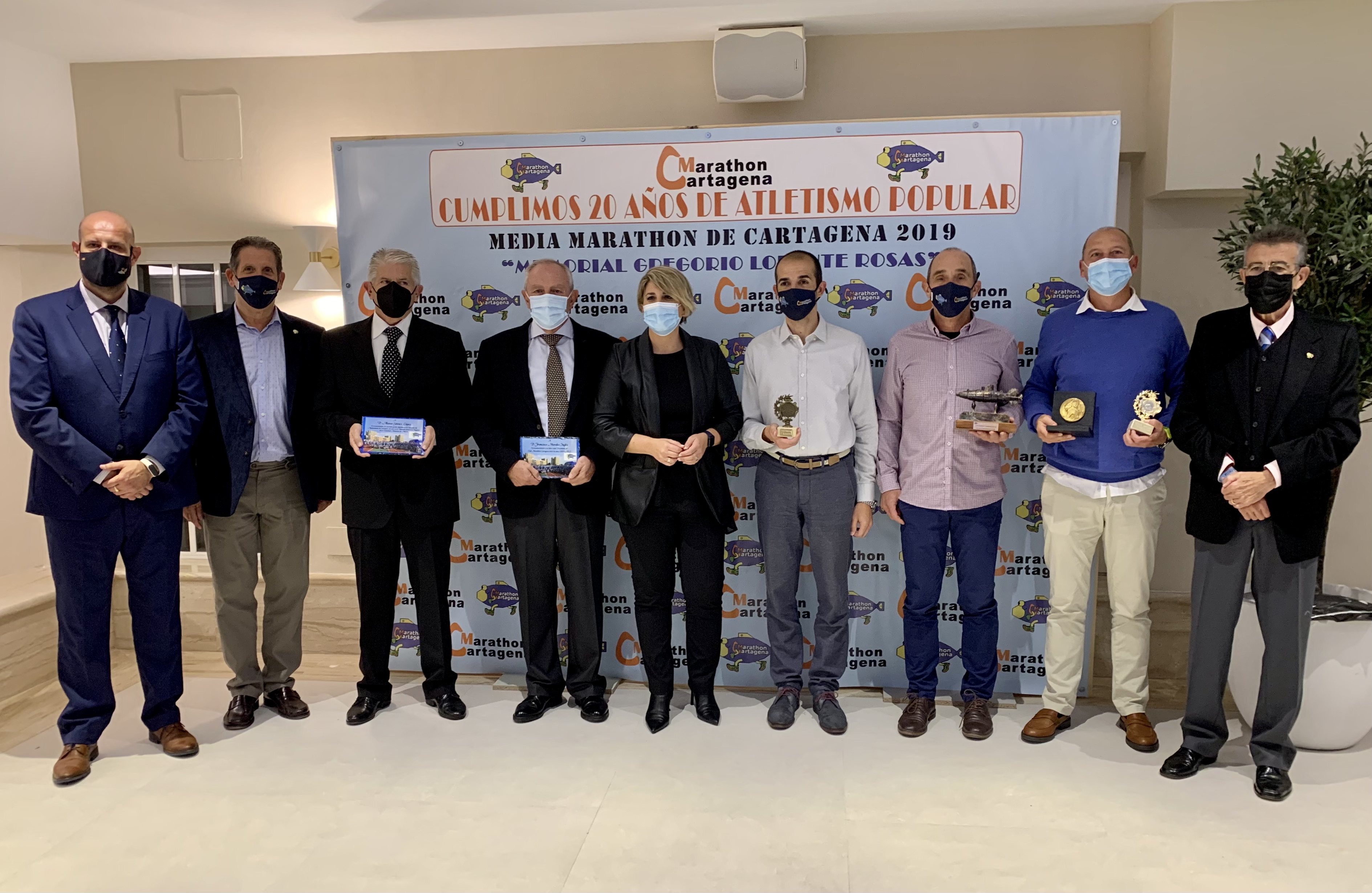 Recibieron placas honoríficas, Francisco Morales Inglés por su trayectoria en el club y su labor como Presidente durante 8 años, y Alonso Gómez López como cabeza visible del deporte cartagenero durante muchos años desde la Concejalía de Deportes.