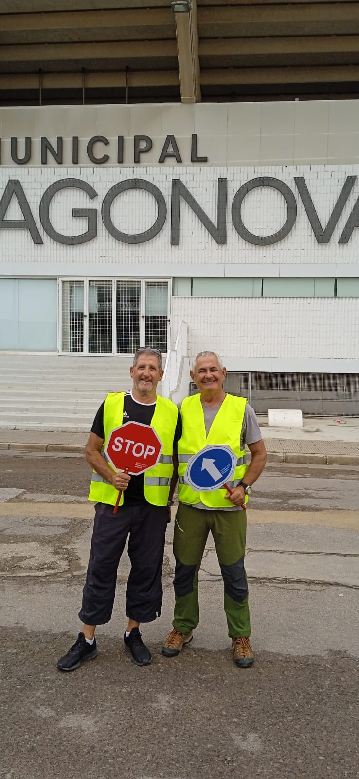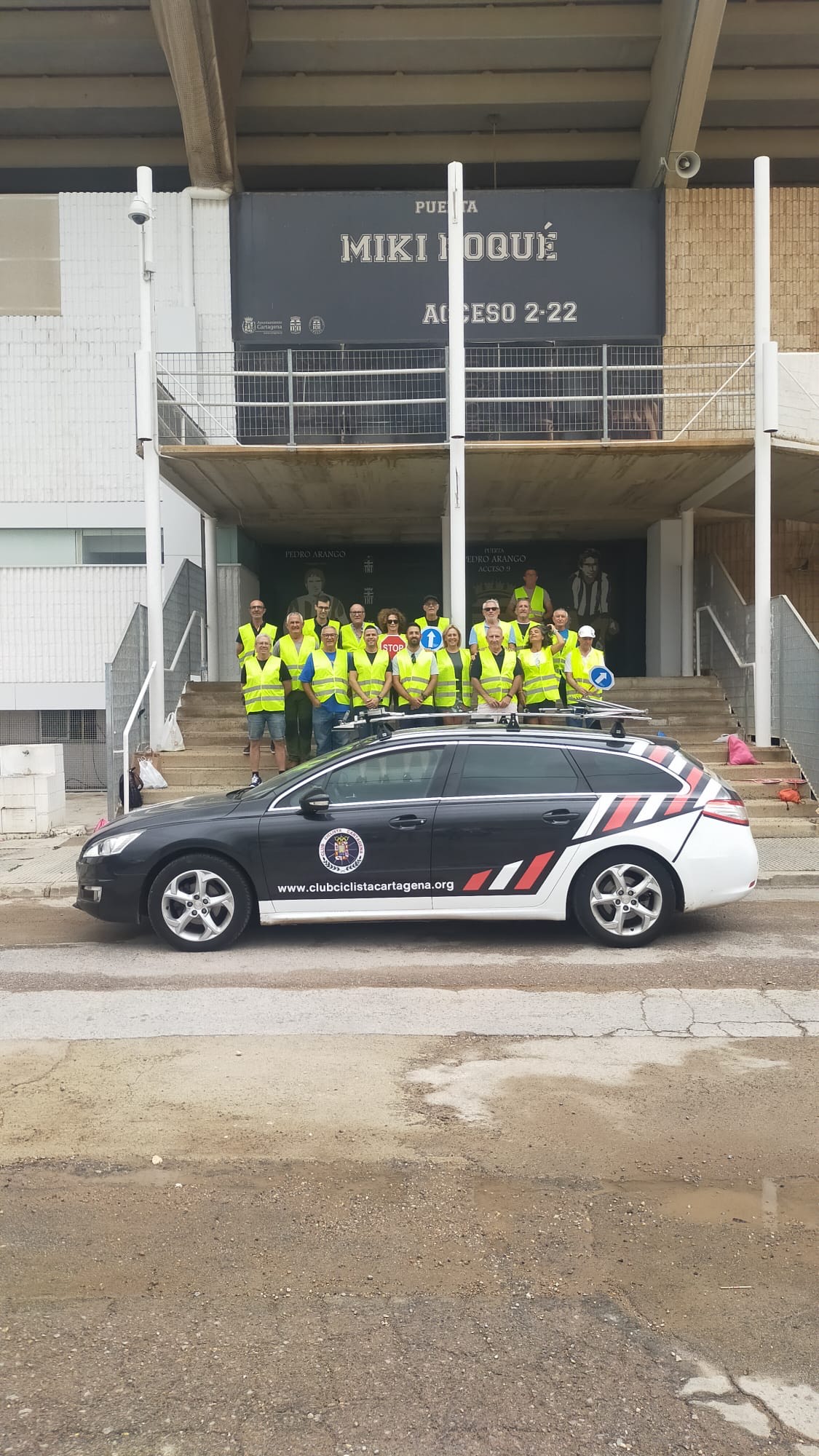 Varios «peralicos» estuvieron de voluntarios en la salida de la prueba por las calles de Cartagena: Joaquin Carralero, Daniel Sánchez Espejo y Joaquin Andreo.