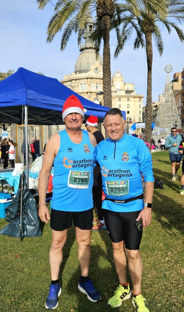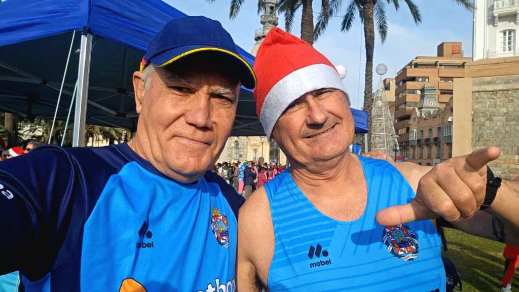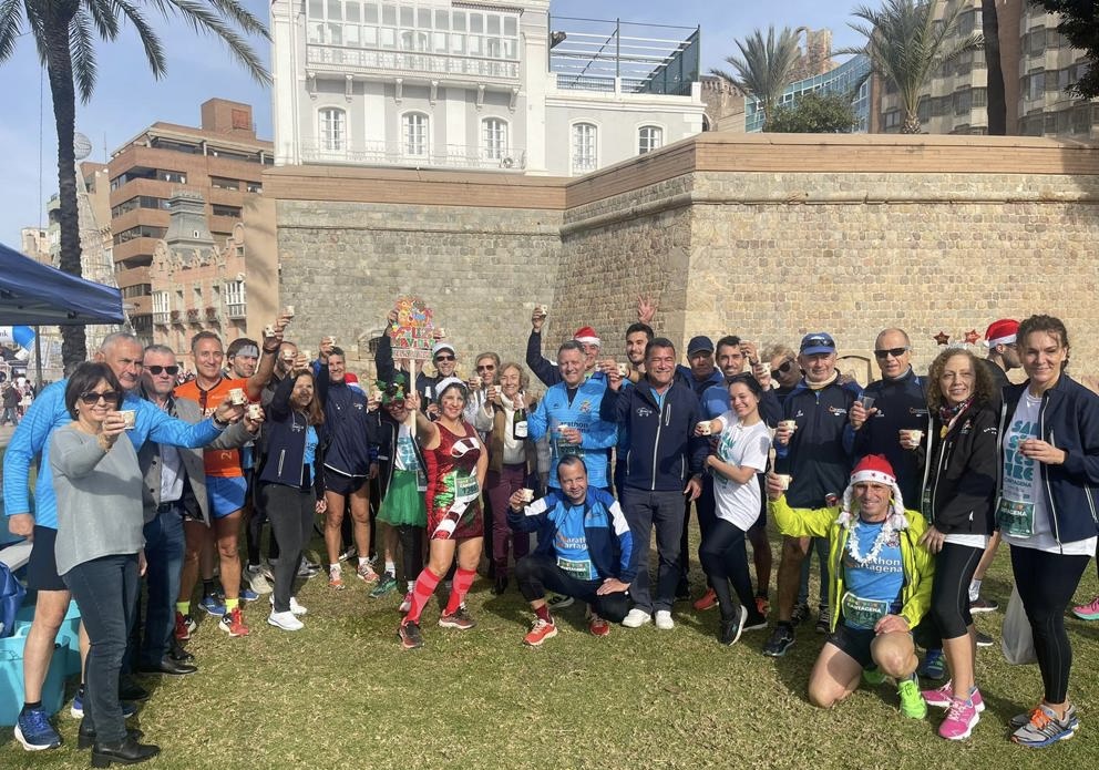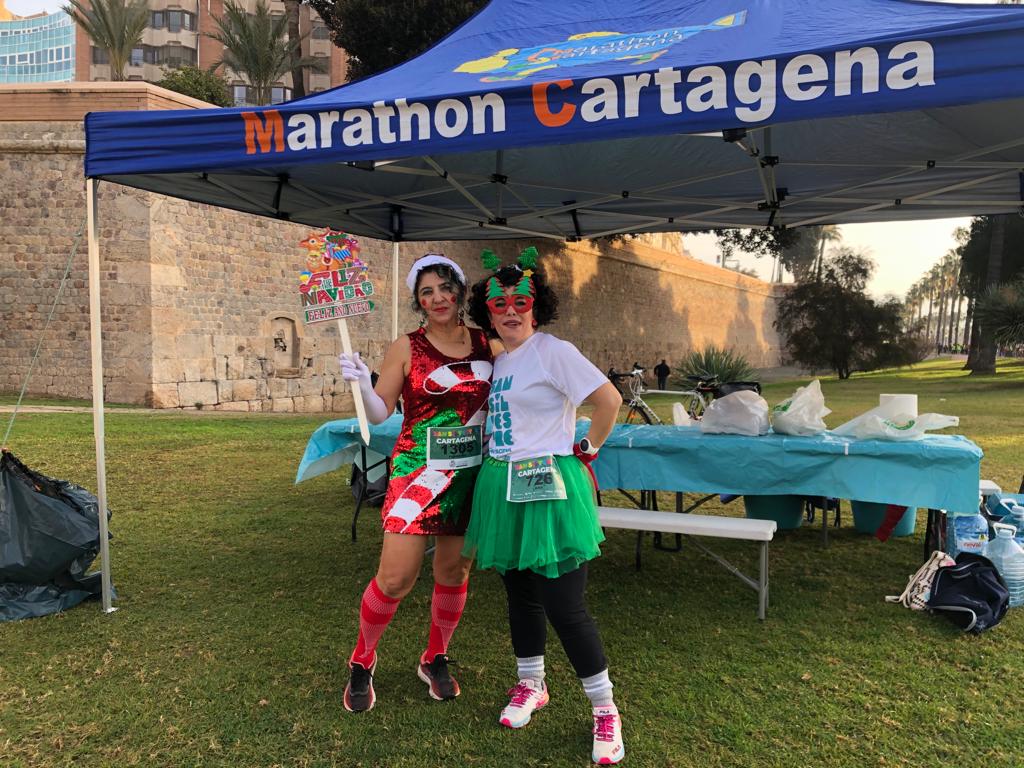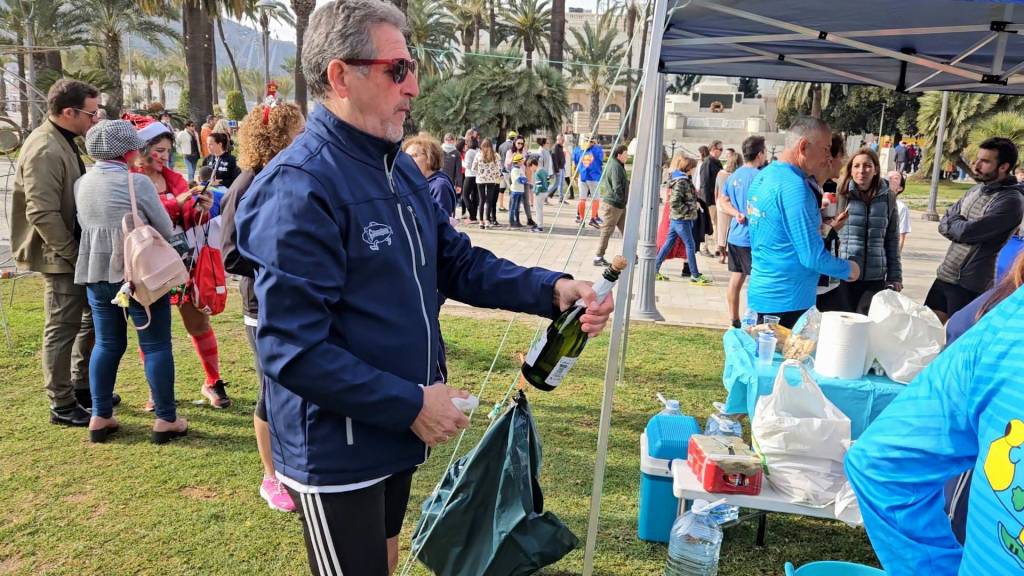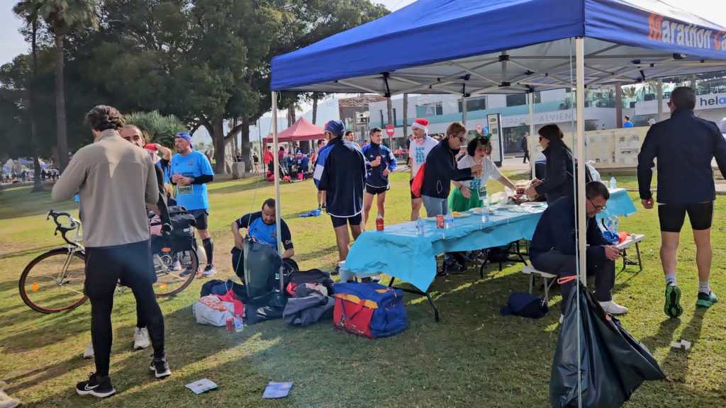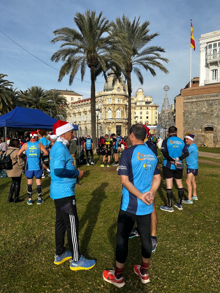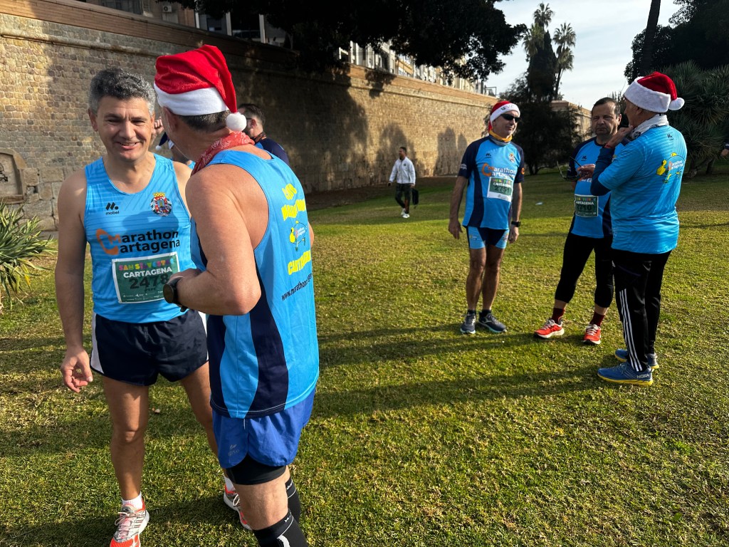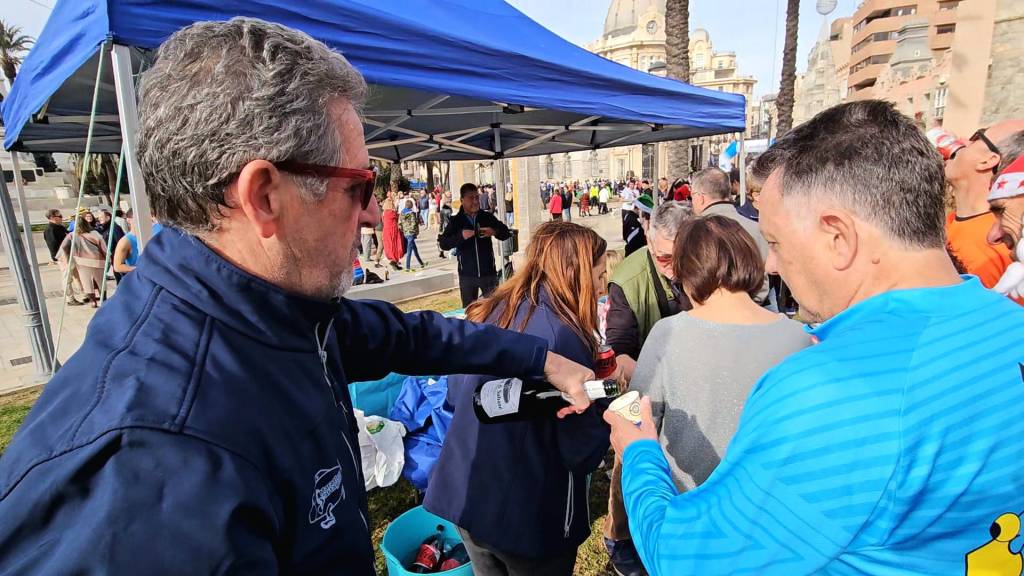 Tras la carrera despedimos el año con refrescos, cervezas, aperitivos varios, dulces navideños y cava, en la carpa del club Marathón Cartagena.