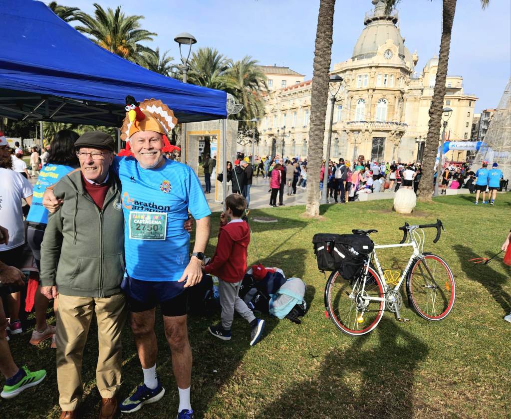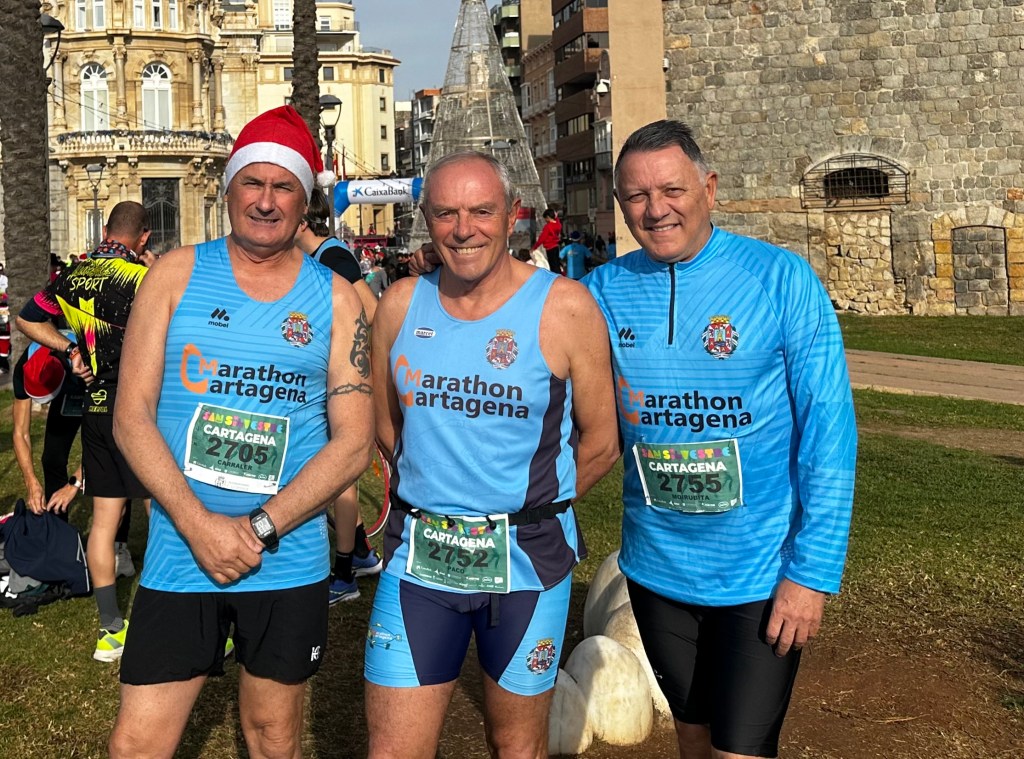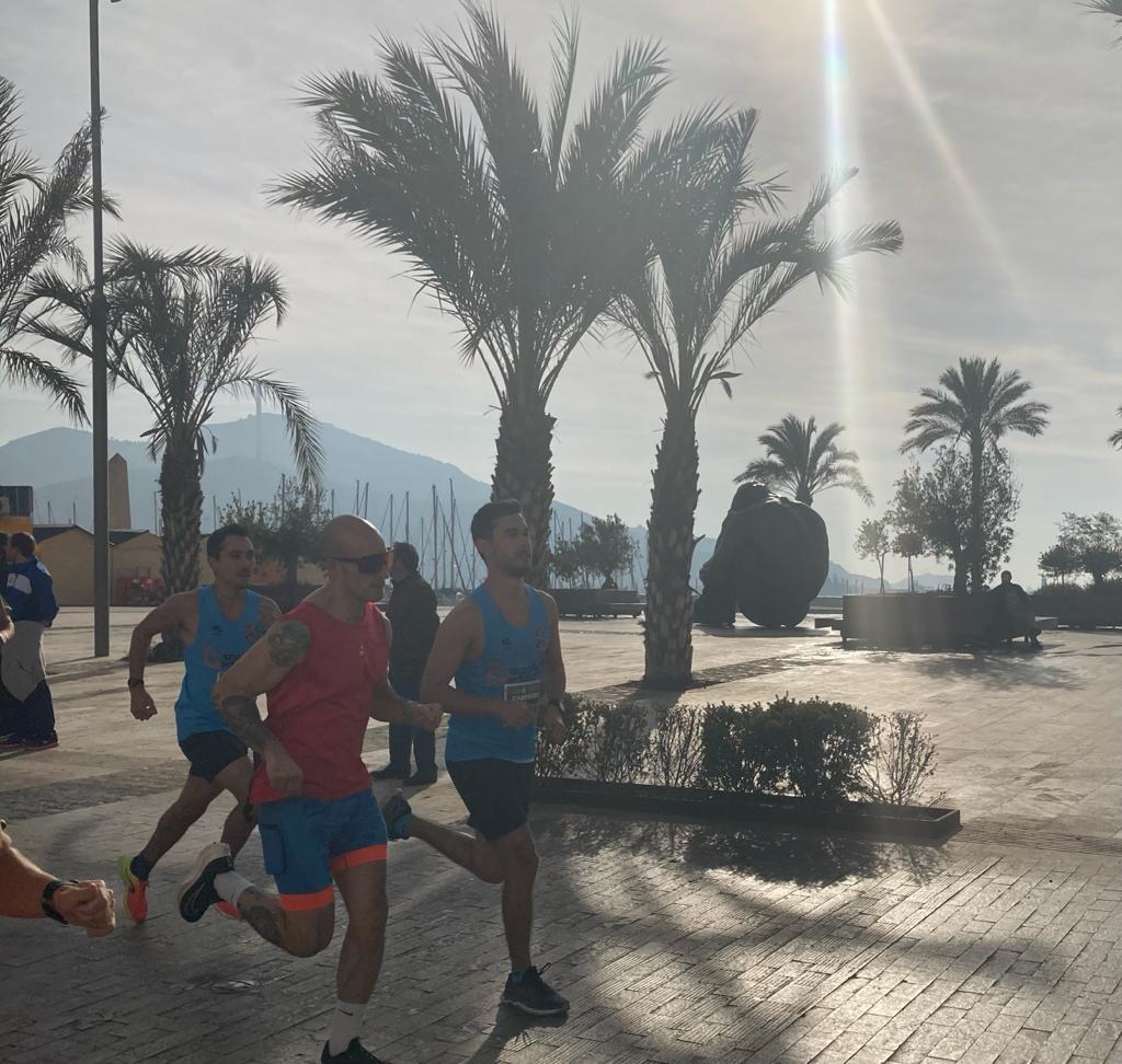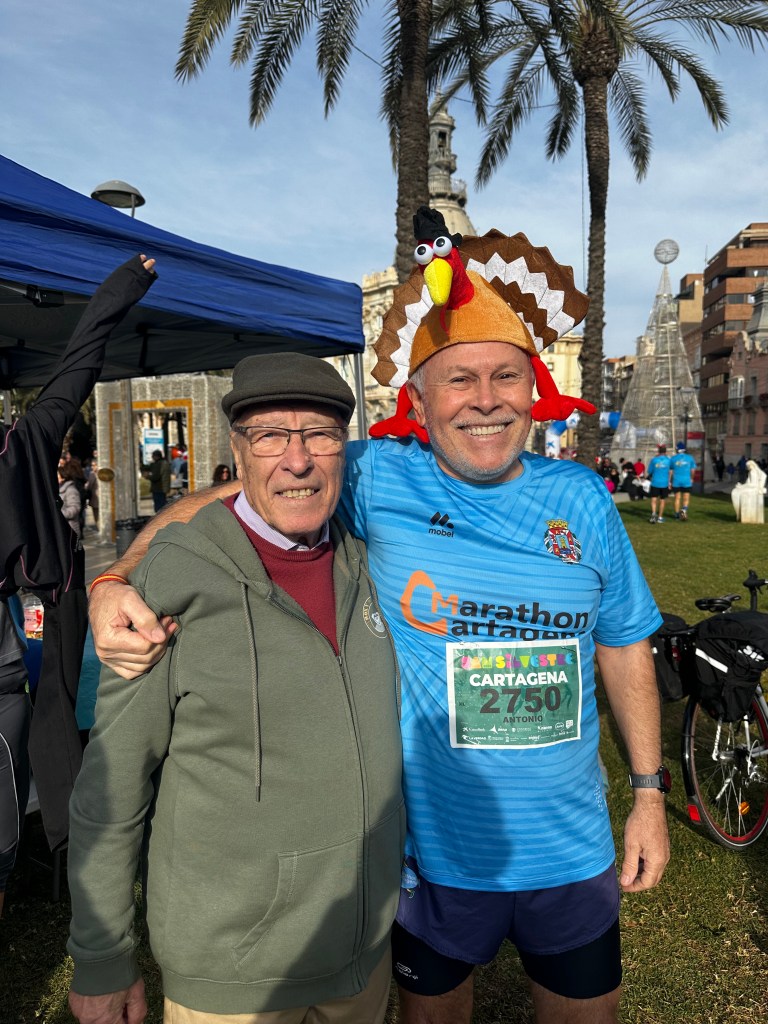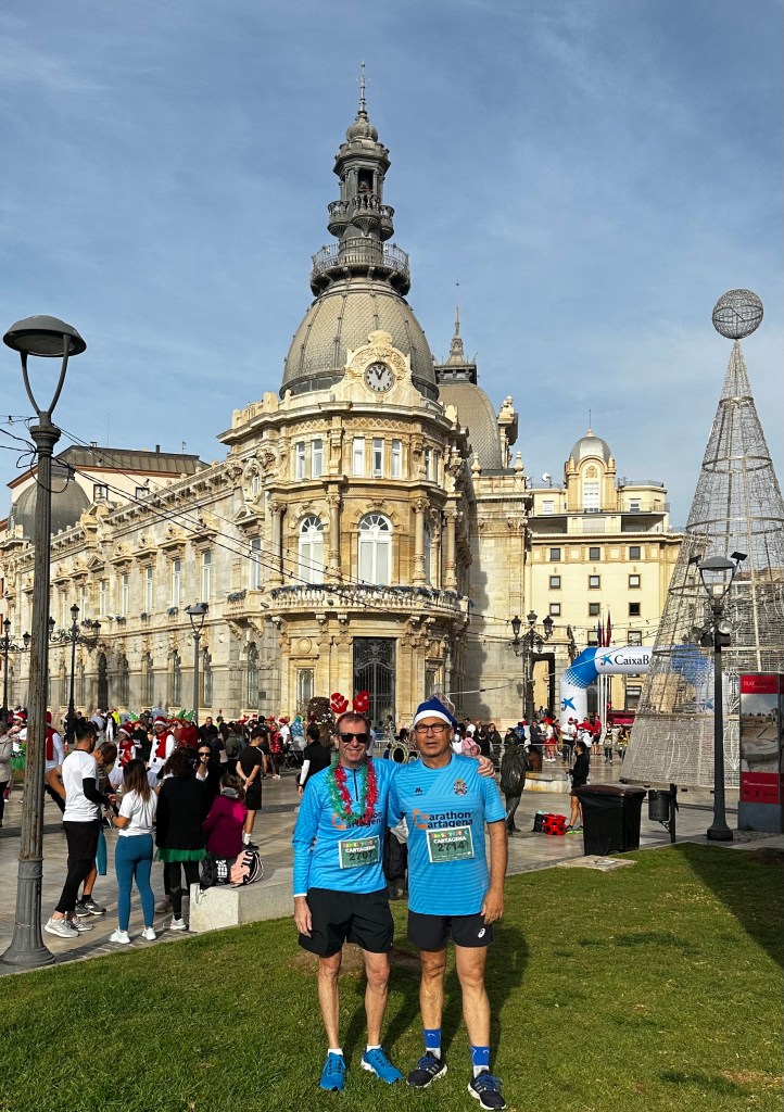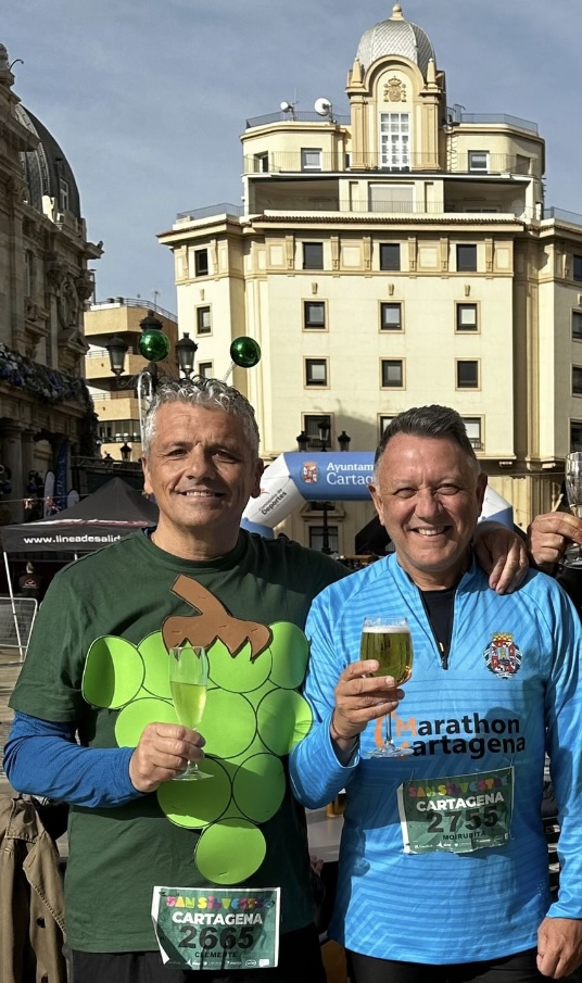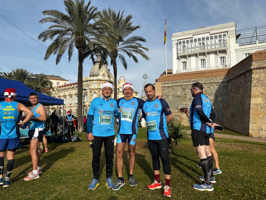 Tras la carrera despedimos el año con refrescos, cervezas, aperitivos varios, dulces navideños y cava, en la carpa del club Marathón Cartagena.