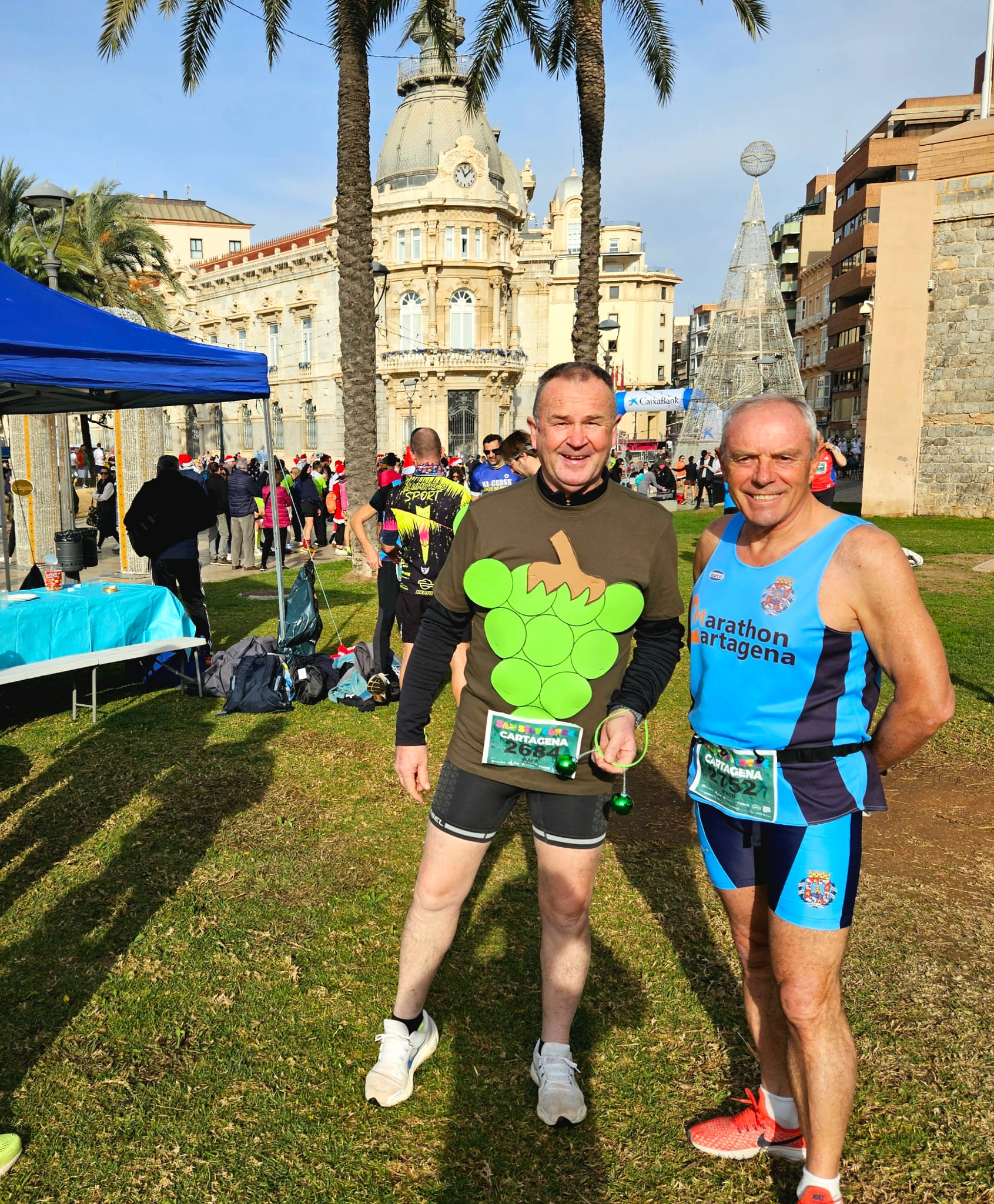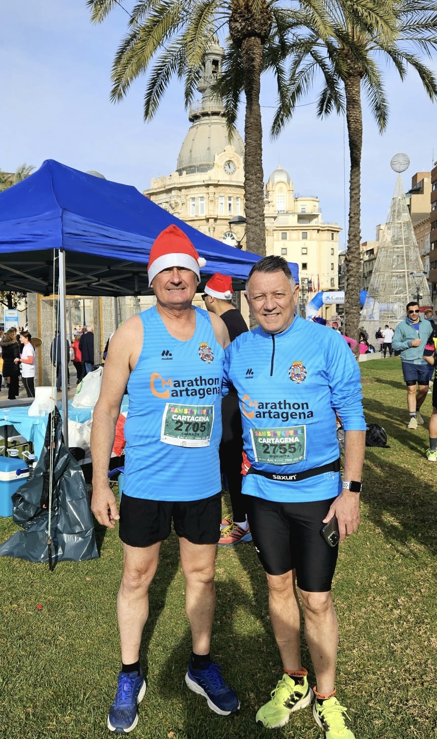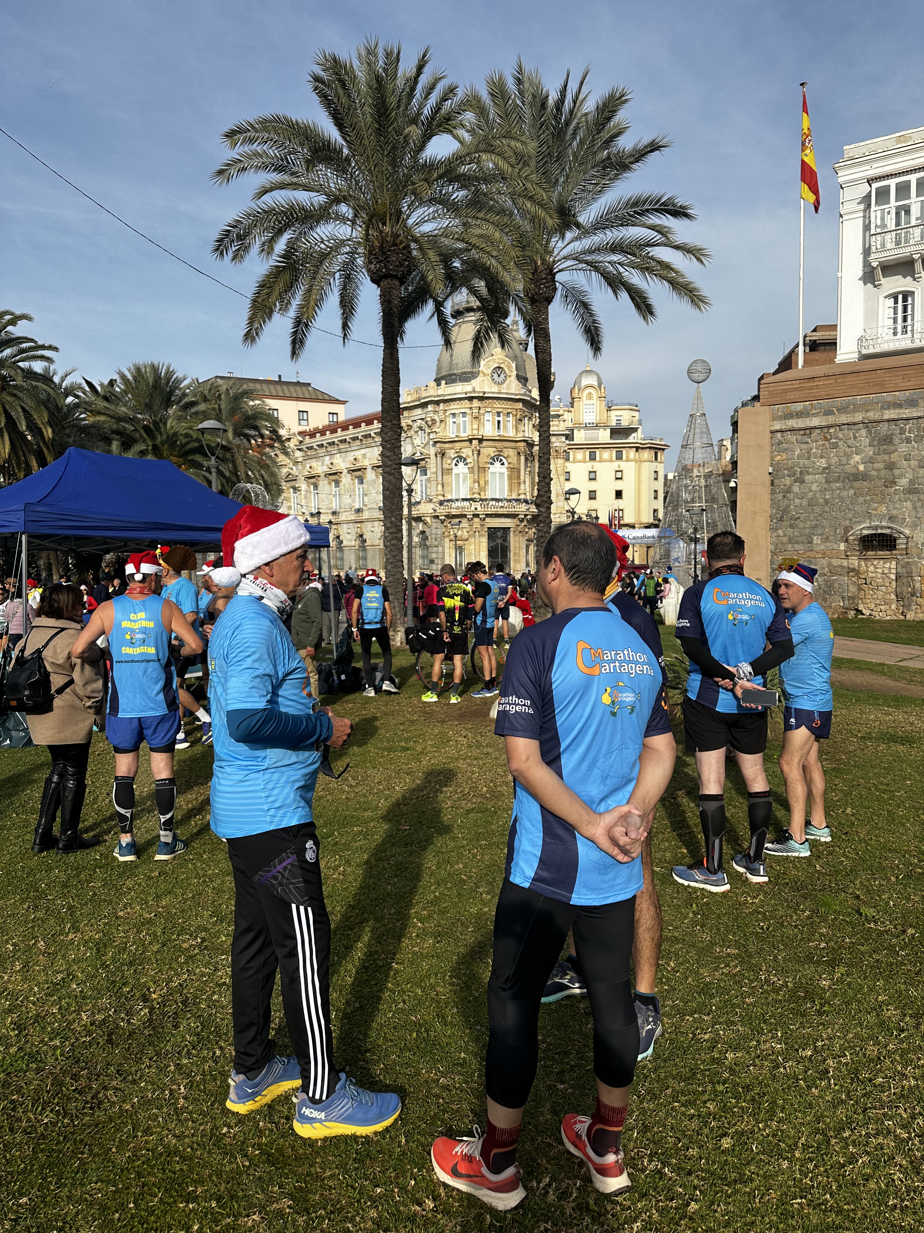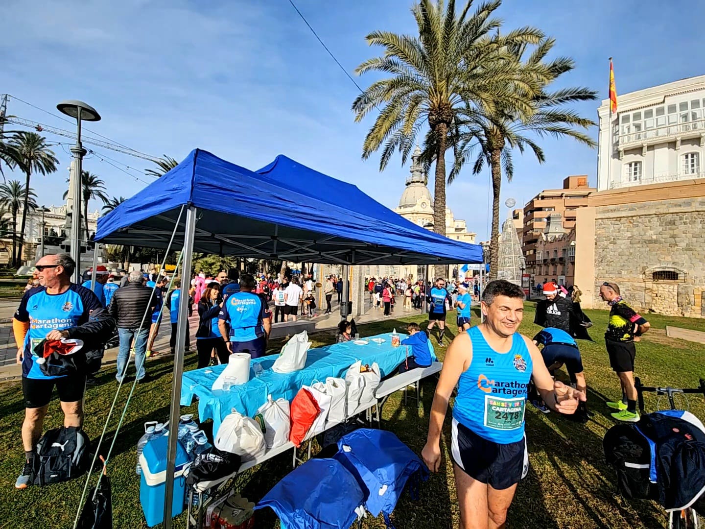 Tras la carrera despedimos el año con refrescos, cervezas, aperitivos varios, dulces navideños y cava, en la carpa del club Marathón Cartagena.
