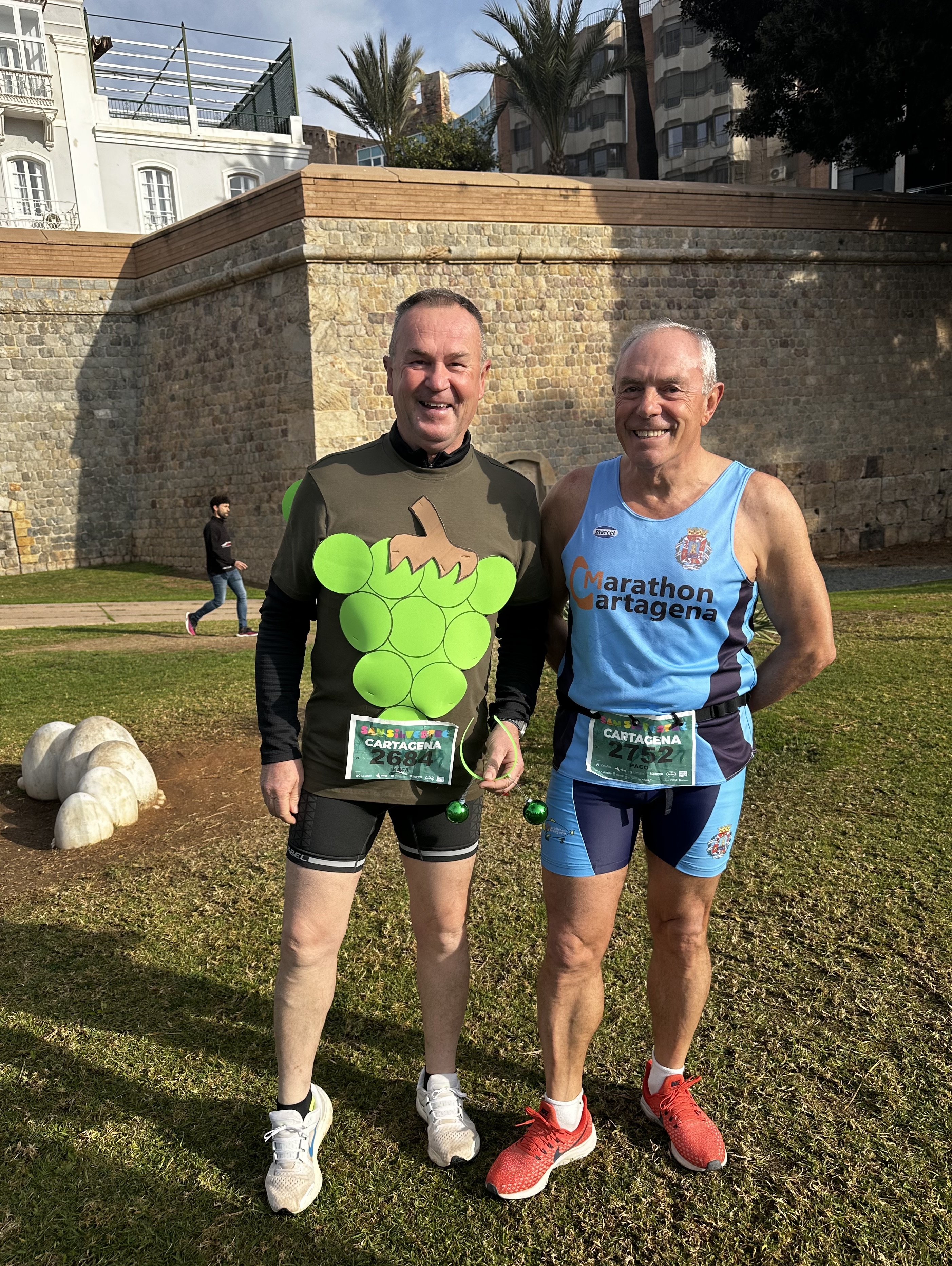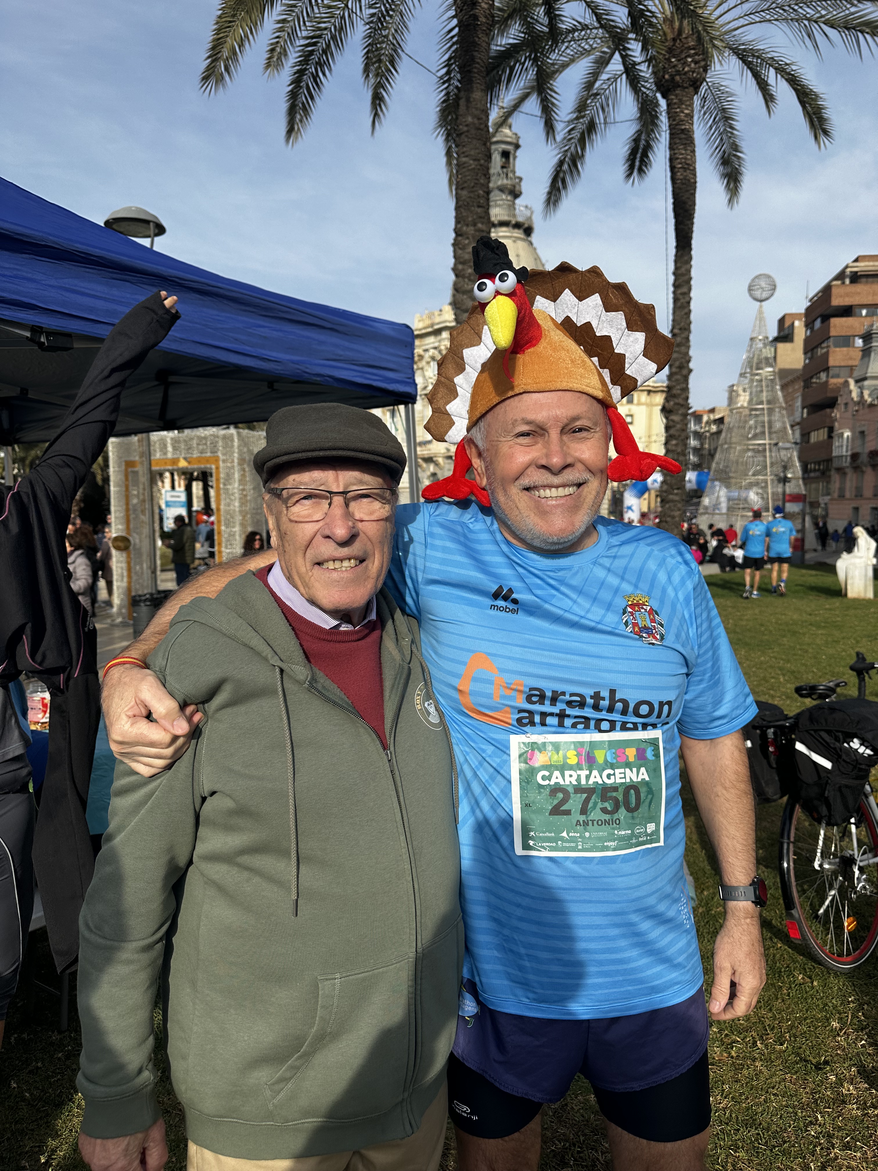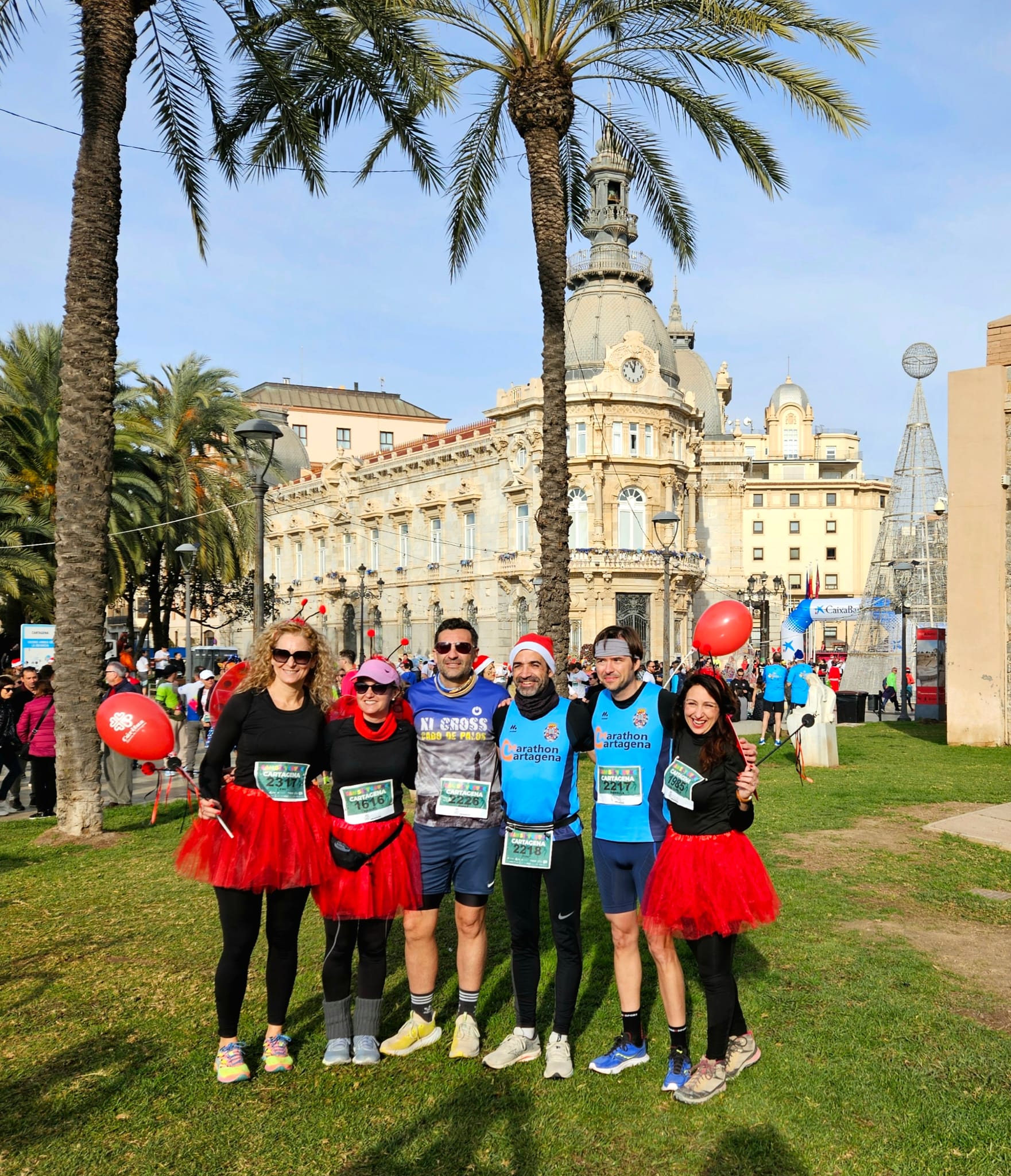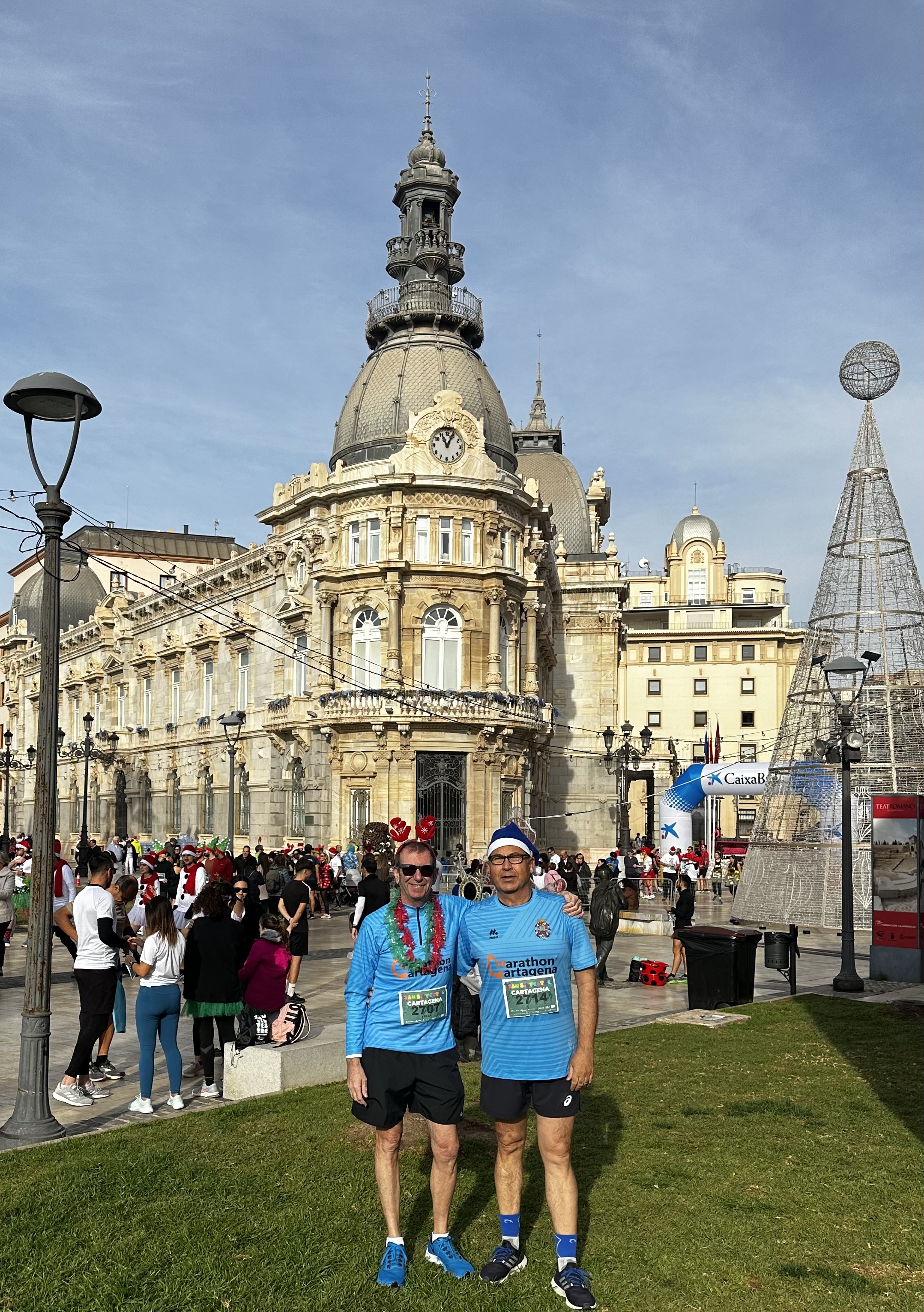 Tras la carrera despedimos el año con refrescos, cervezas, aperitivos varios, dulces navideños y cava, en la carpa del club Marathón Cartagena.