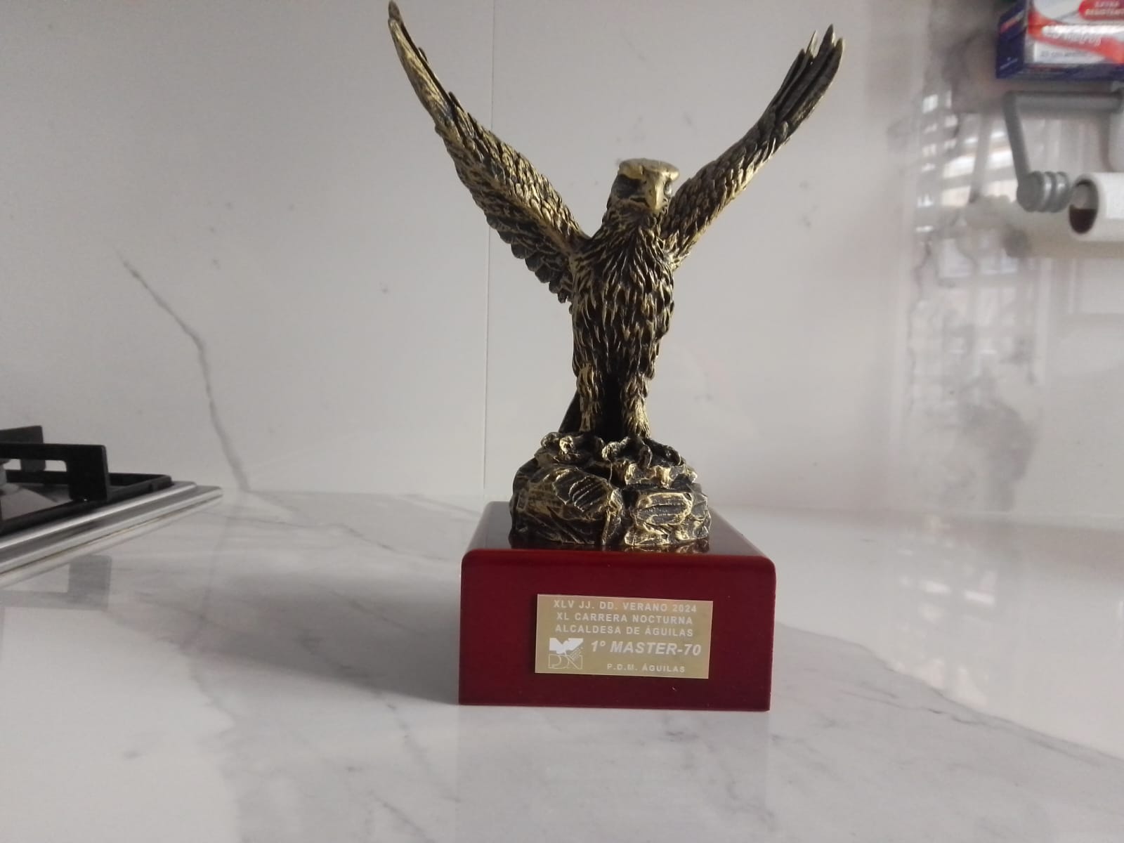En la imagen superior el singular trofeo que se entrega a los atletas de podium.