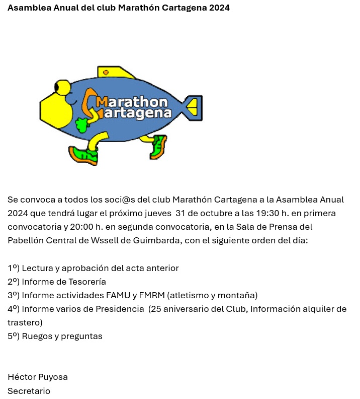 Publicado el 15 octubre, 2024 por Club Marathon Cartagena