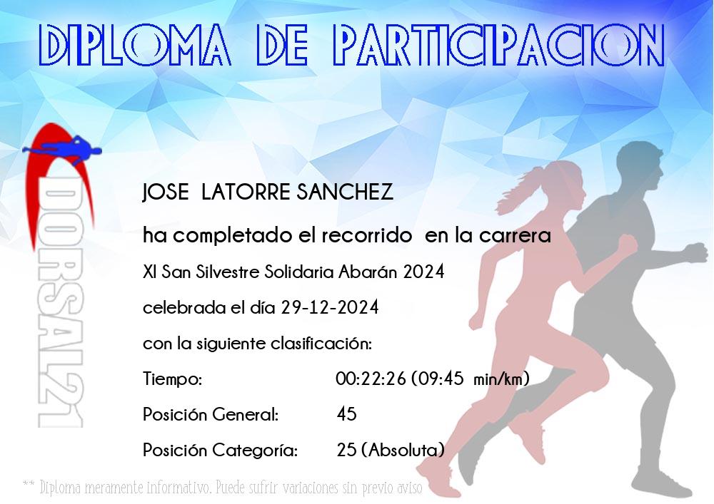 Celebrada el 29/12/2024 con la participación de José Latorre Sánchez 22:26 con recorrido urbano de 4,8 K y 2,4 K.