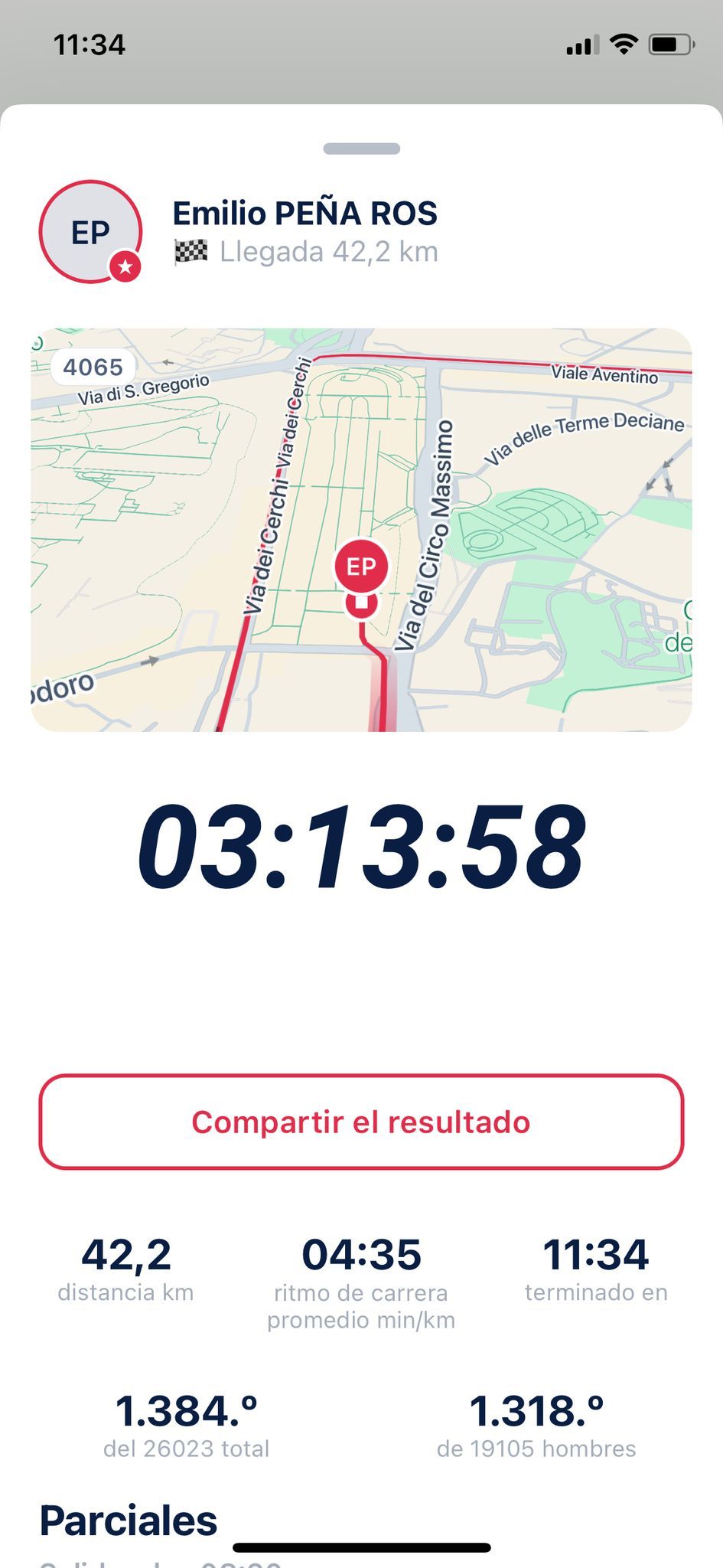 Emilio Peña Ros 3:13:58 completó una nueva maratón el 16/3.