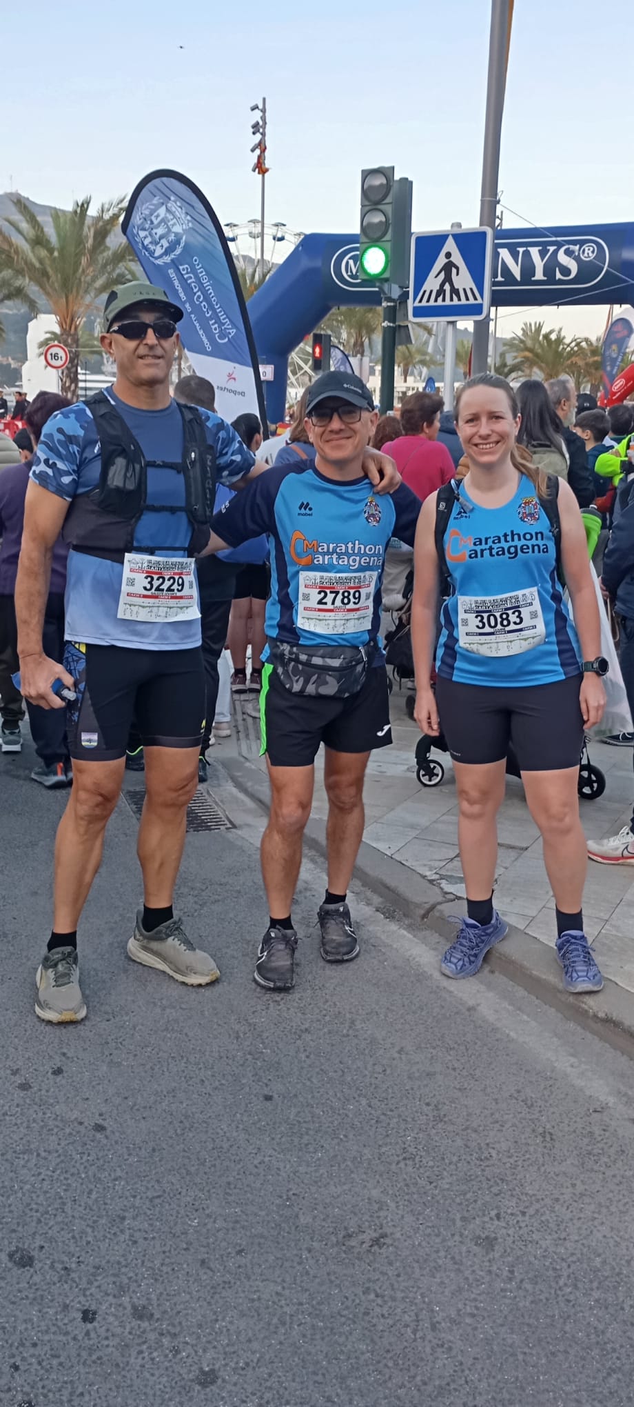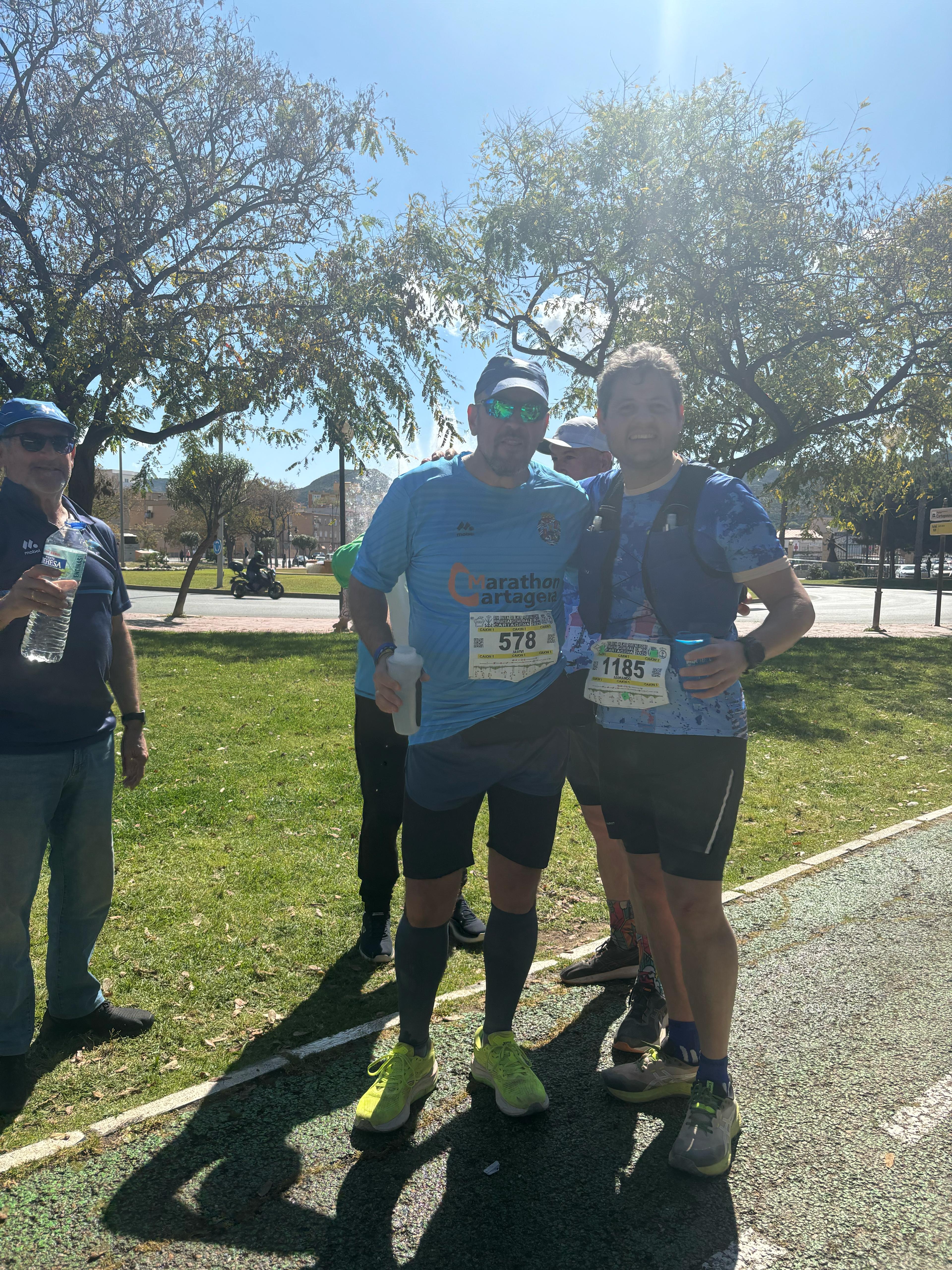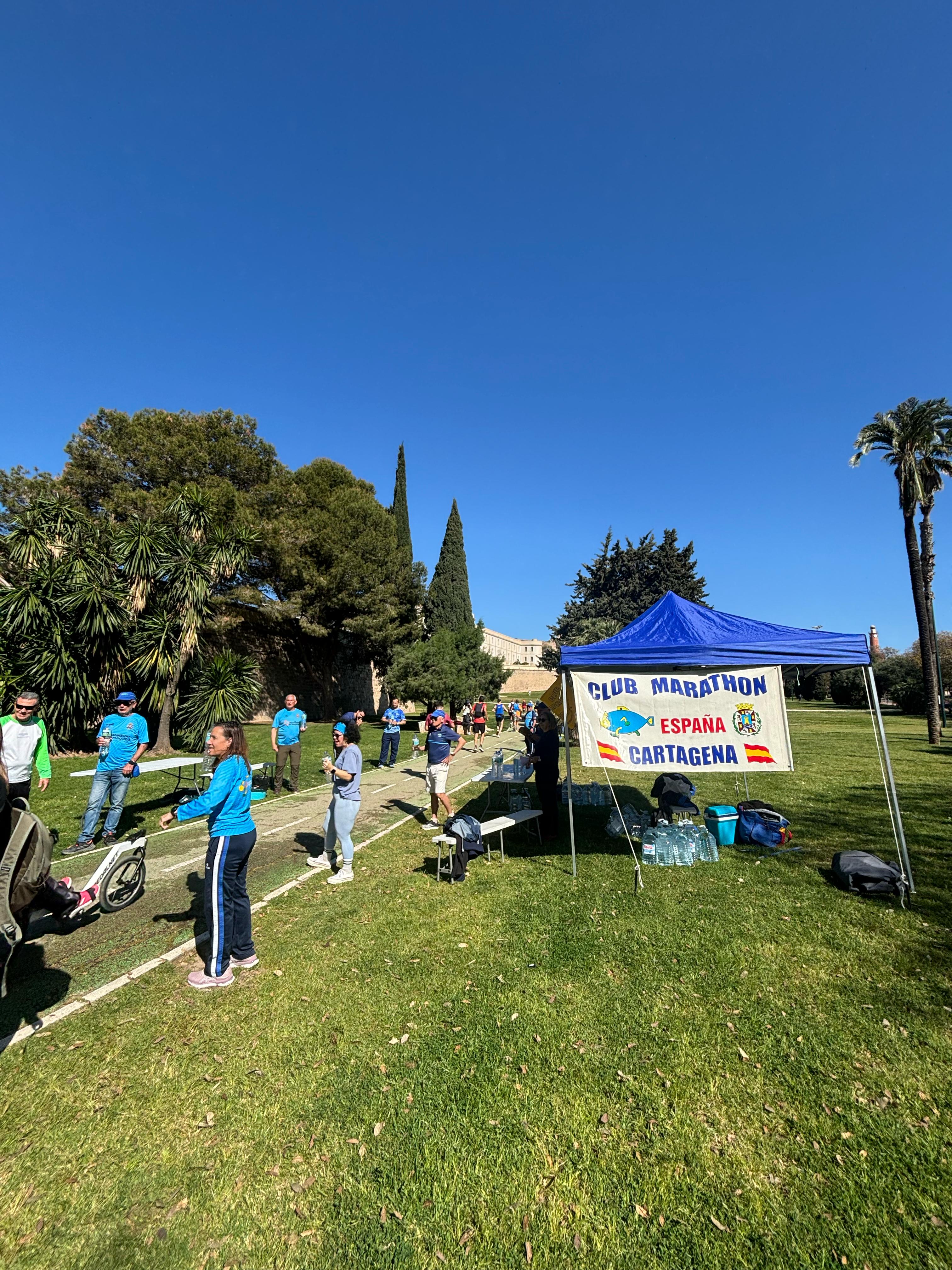 En esta edición XIV, nuestro club por segunda vez ( ya lo hicimos en la XII ) ha experimentado la puesta en escena de la carpa de apoyo a corredores en general y a los nuestros en particular. Creo que ha supuesto un éxito en todos los sentidos, el punto elegido es idóneo por la facilidad para montaje y desmontaje de la logística, el avituallamiento isotónico y no isotónico de los participantes junto a la histórica muralla Carlos III y con el marco de fondo de nuestro querido puerto.