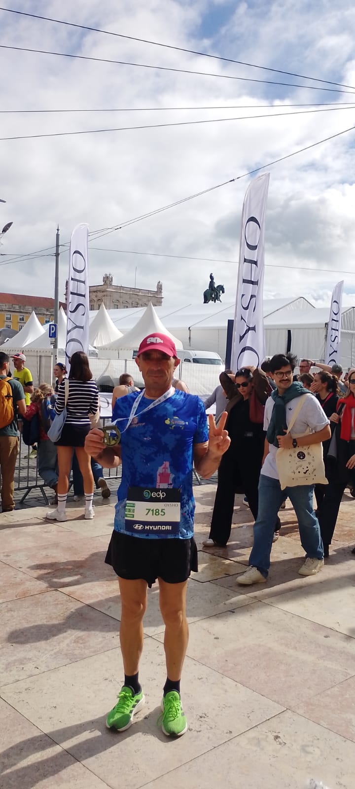 José Ramón Camero Fuentes 4:00:46 completó su 57ª Marathon personal, en un nuevo circuito saliendo desde la localidad de Carcavelos, recorrido junto al litoral Atlántico y llegada a Praca do Comerco en el corazón de la capital lisboeta.
