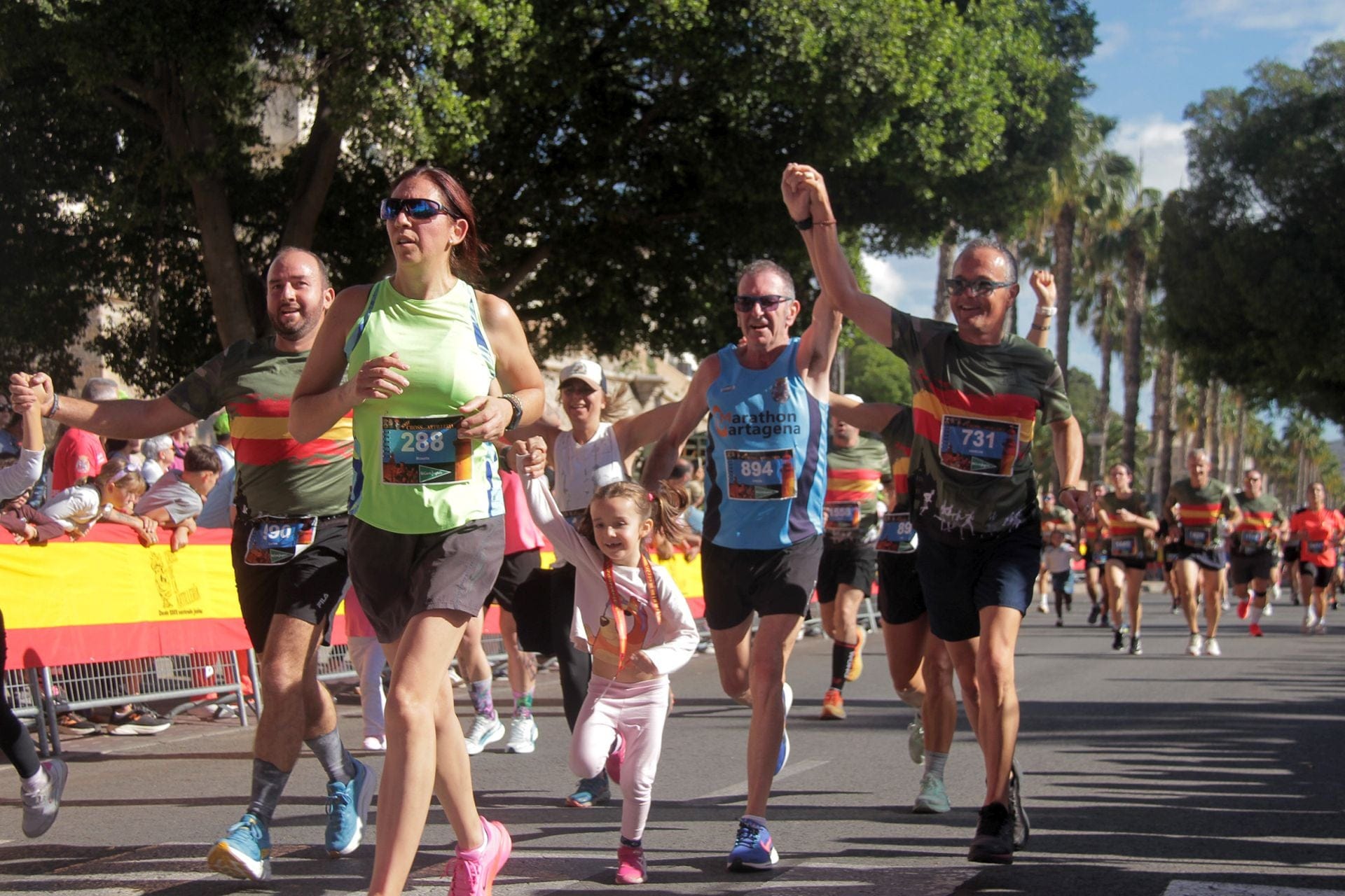 Pedro Jose Martínez Fresneda (dorsal 894) llegando a meta con los mejores ánimos y en buena compañía. Una de esas fotos que se enmarcan. También hay que acreditarla a Pedro Martínez, de La Verdad.