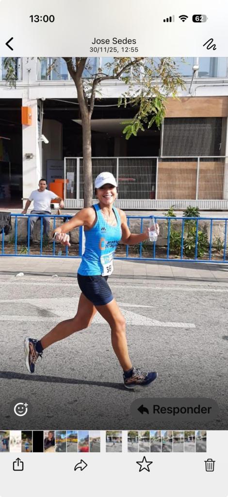 María del Mar García López completaba su decimoséptimo maratón con un tiempo de 3:52:28, saliendo de lesión y topándose con esas cuestecitas inesperadas. Mar lo resumió con elegancia. “Se hizo durillo”.