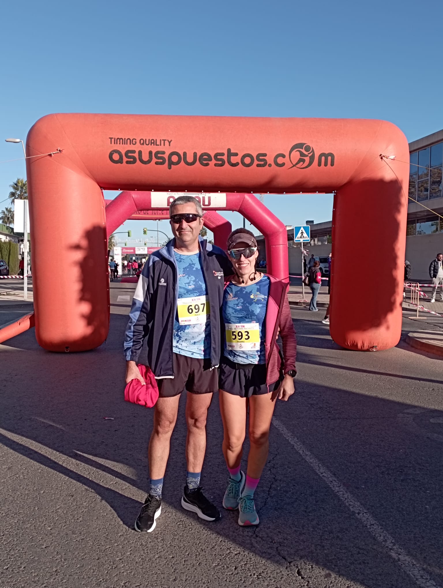 En la XIX Media Maratón y XII 11K Villa de Torre Pacheco, el club se presentó con tres corredores que dejaron el pabellón bien alto. Elena García García terminó sexta en la categoría VBF con un tiempo de 0:57:58, a un ritmo de 5:16 por kilómetro. Pablo Hernández Navarro cruzó la meta en 0:58:14, quincuagésimo en VBM y con un ritmo prácticamente calcado al de Elena: 5:17. Yo no lo sabía, pero viendo la foto debí sospechar que son algo más que un par de peralicos random que coinciden en la salida…