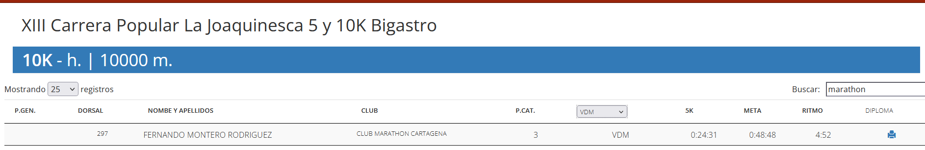 José Fernando cruzó la meta en 48:48. Tercero de su categoría, VDM (veteranos D masculino, que no sé qué edades abarca, pero conozco a pocos chavales de veinte tacos que se hagan un 10K en menos de cincuenta minutos). Y eso sin jet lag, sin ron, sin dormir en un avión cruzando el Atlántico.