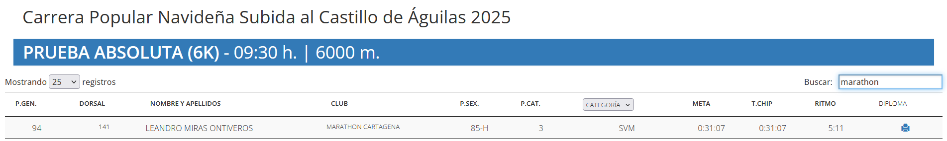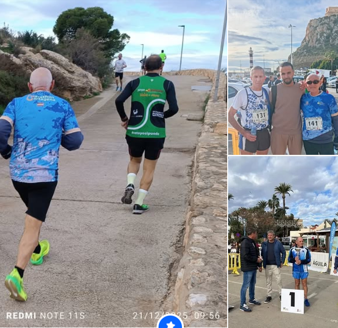 Leandro Miras lleva unos años jubilado de la recepción del Hotel Carlos III, pero no para quieto. El 21 de diciembre se plantó en Águilas para la Carrera Popular de Navidad, que tiene subida al mirador del Pico de L’Aguilica y al Castillo de San Juan de las Águilas. Solo ver la foto de esa cuesta me da taquicardia.
