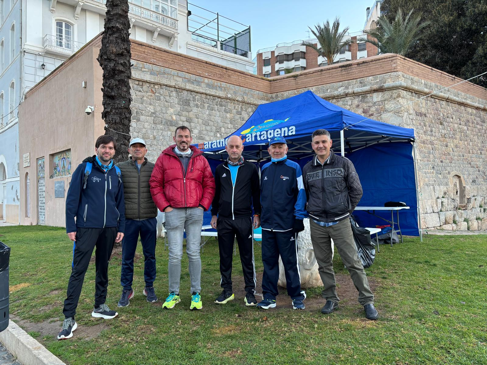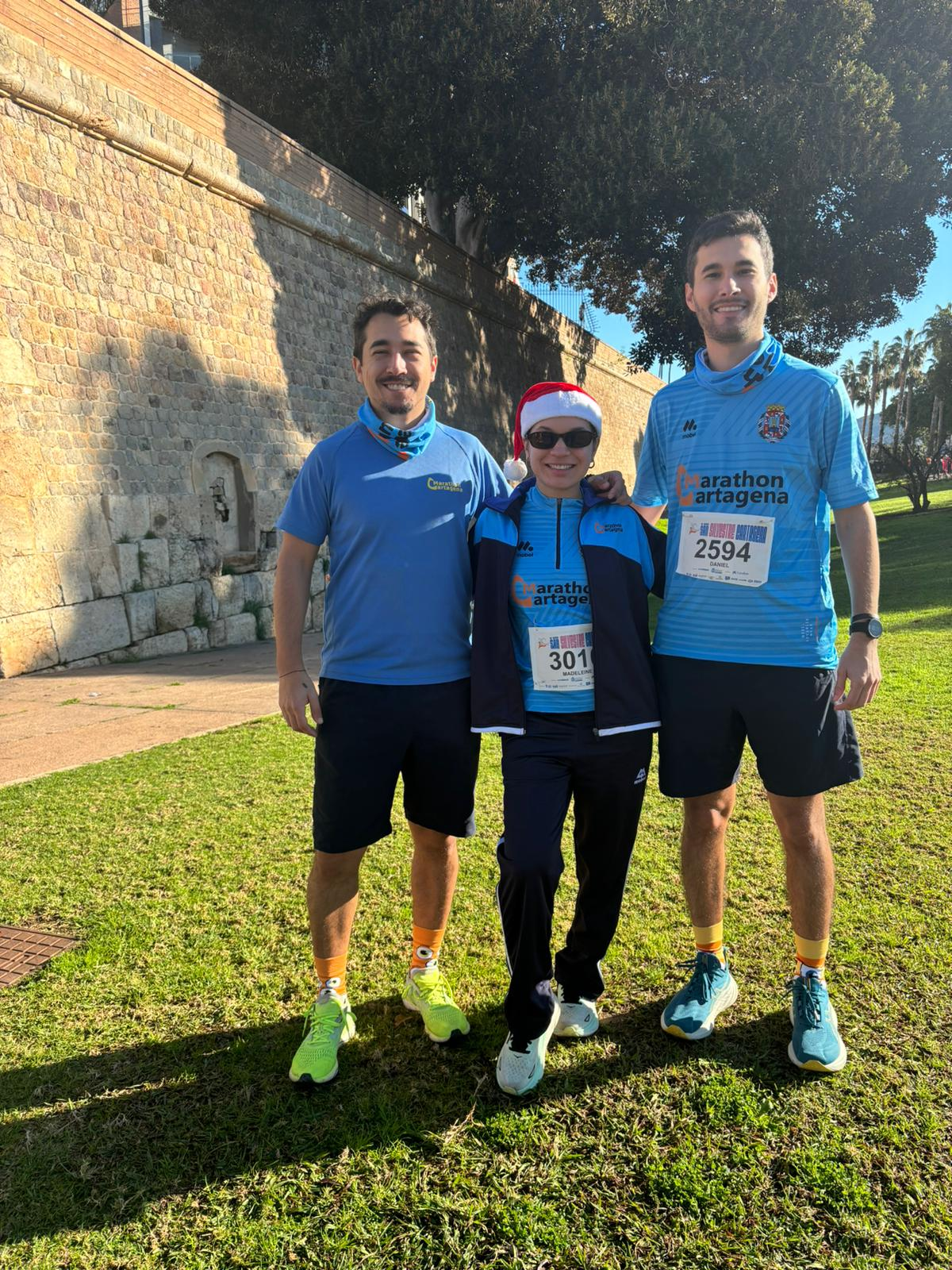 La tradicional foto de familia, antes de la carrera.Desde otro ángulo, incluyendo las sombras benefactoras de nuestros retratistas.Los que madrugan (y se lo curran). Gracias a ellos tenemos un hogar, dulce hogar, en la meta.También hubo representación del club al otro lado del puerto de la Cadena.Y en las lejanas tierras de los celtas. Manolo en la San Silvestre de Ribadeo, Lugo.