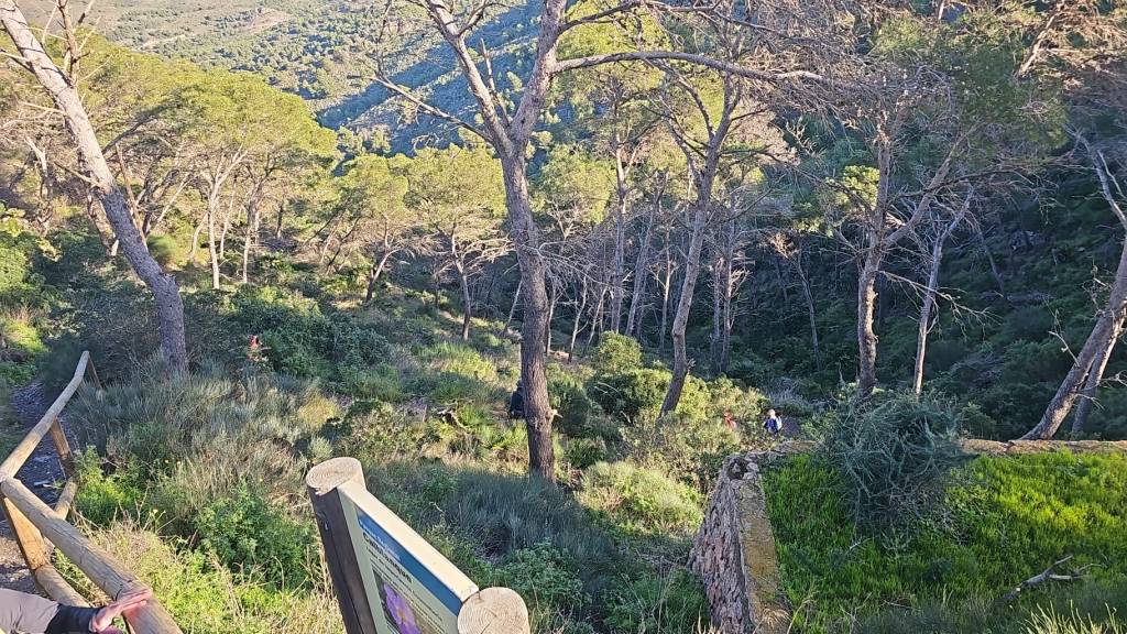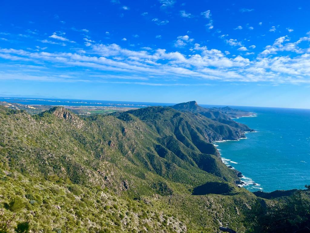 Después de los acantilados nos metimos en un bosque frondoso que nada tenía que envidiar a sus primos del norte. Pinos carrascos, palmitos, algún que otro ciprés de Cartagena, también llamado sabina mora —esa especie endémica que solo crece aquí y que los botánicos bautizaron Tetraclinus articulata porque para eso son botánicos—, todo ese verde espeso que te hace olvidar que estás en el sureste seco de España.