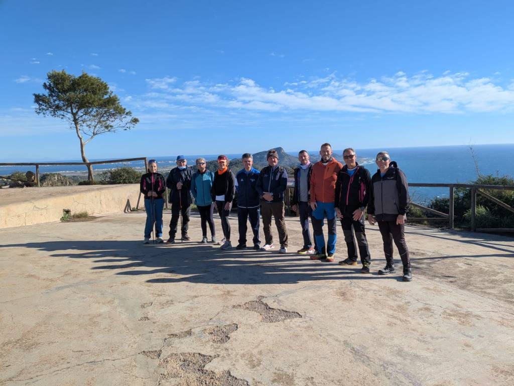 La última parte era la más técnica y durilla, pero el grupo la afrontó sin problema alguno. Tres horas de marcha circular que te van llevando monte arriba hasta los 305 metros de altura donde, en 1931, la dictadura de Primo de Rivera decidió plantar dos cañones Vickers modelo 1923 de 88 toneladas cada uno, dieciocho metros de longitud, calibre de 381 milímetros, alcance de 35 kilómetros. Los mismos que hay en Castillitos, en Cabo Tiñoso. Toda una red de baterías costeras que estuvieron en servicio hasta 1994, hasta que los modernos misiles las dejaron obsoletas (para los asuntos militares), aunque sus usos culturales y turísticos no caducan.