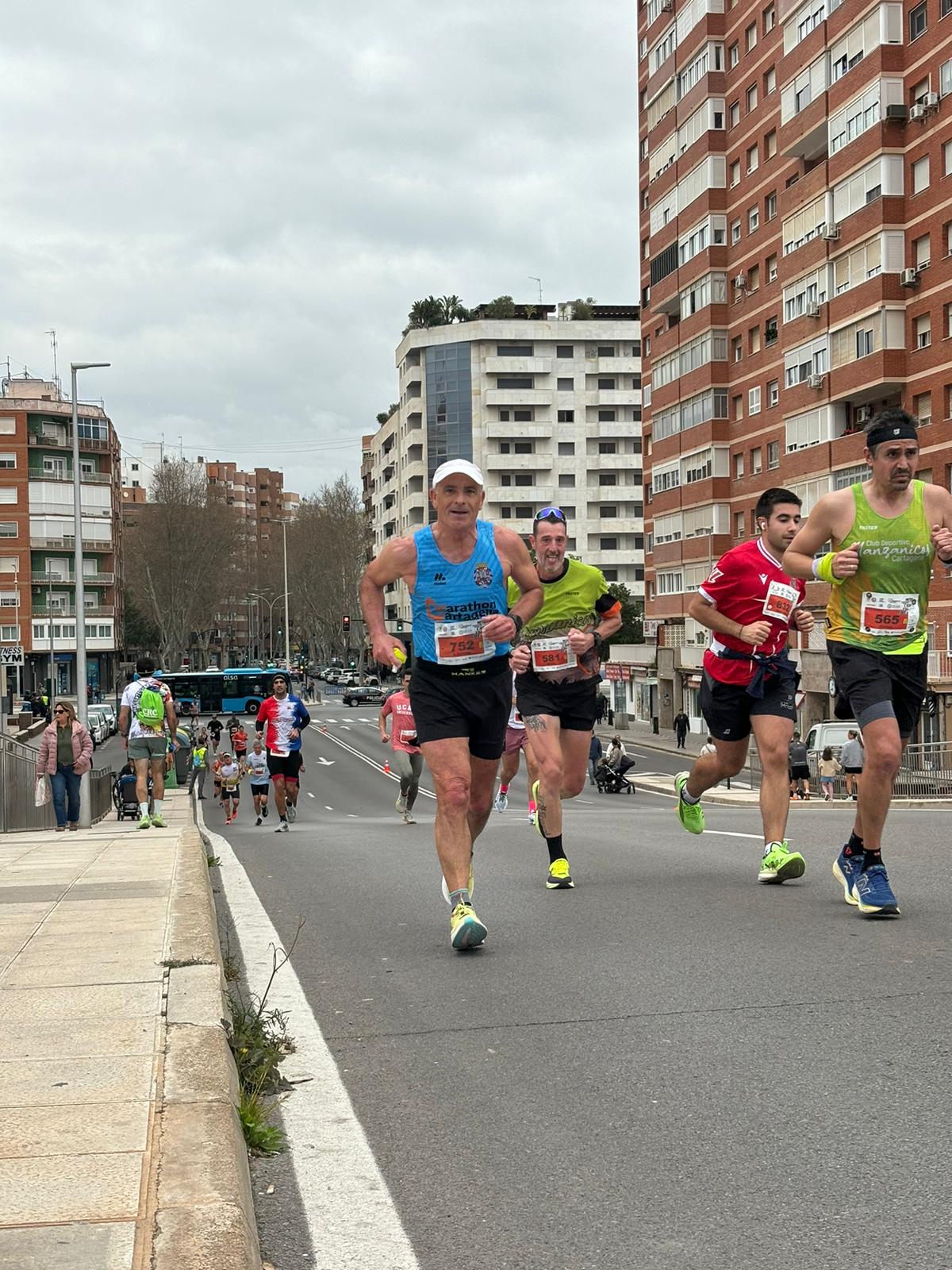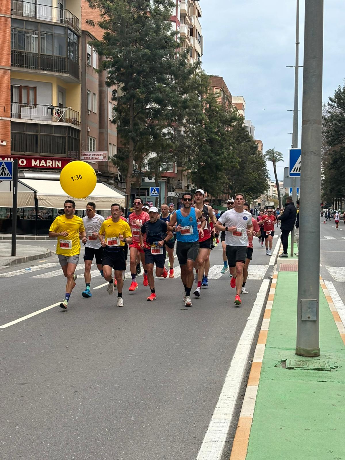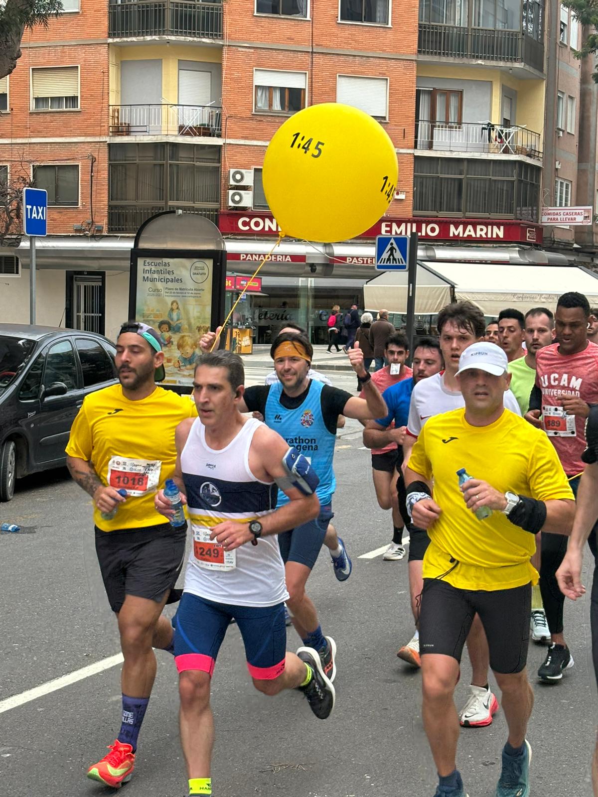 Antonio Pérez García (1:43:24, 4’56»), Maximino Vázquez Ferrer (1:44:15, 4’58») y Pablo Pérez Esparza (1:46:06, 5’04») han completado un bloque muy sólido por debajo de las cinco y pico/km, con la liebre del 1.45 como referencia. También tuvieron en la visual al del globo amarillo María del Mar García López, que ha cruzado la meta en 1:46:12, cuarta de su categoría M45 femenina. Y José Ramón Camero, que ha cerrado la media en 1:46:48 a 5’05». Décimo de su categoría M60.