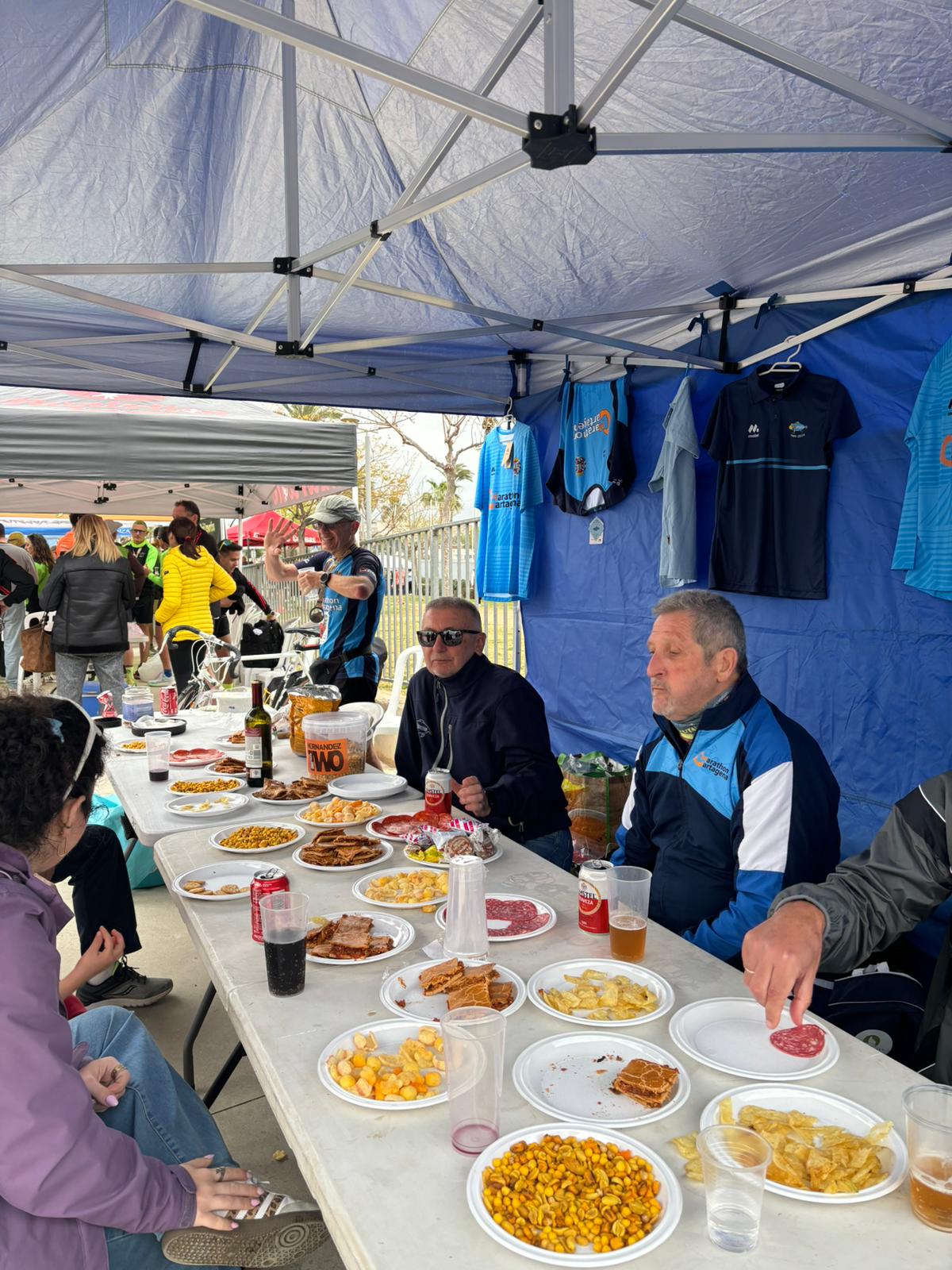 Y un reconocimiento que merece párrafo propio para los que no corrían pero estaban ahí. Los que montaron la carpa, los que aplaudieron en las cuestas, los que hicieron fotos, los que gritaron ánimo a los que iban de azul y a los que no. Los que después se quedaron a la paella y a vender camisetas y a hacer lo que siempre hacemos cuando nos juntamos, que es convertir una mañana de domingo en algo que se parece bastante a una familia con zapatillas de correr. Porque un club no son solo los que cruzan la meta: son también los que están esperándote cuando llegas.