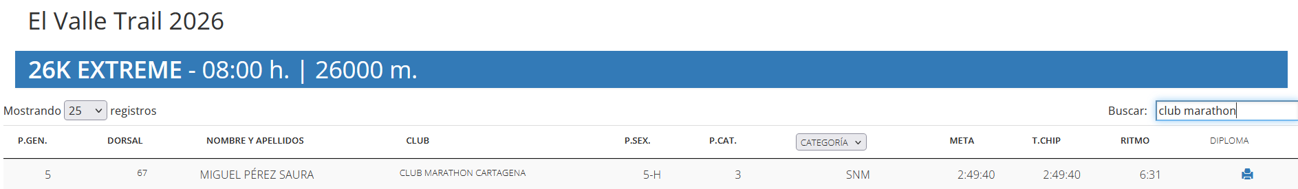 A Miguel Pérez Saura (Mibu en el dorsal y en el WhatsApp), yo no lo tenía controlado, así que asumo que es otra incorporación de nuestra política de fichajes que ni el Madrid de Florentino. Si es así (aunque puedo equivocarme porque soy un community novato), se estrenó con la camiseta del club y lo hizo de una manera que no admite indiferencia: quinto de la general y tercero en categoría senior masculina, con un tiempo de 2:49:40. O sea, que este es de los ‘pros’. Como carta de presentación es envidiable. Y sin carta, también.