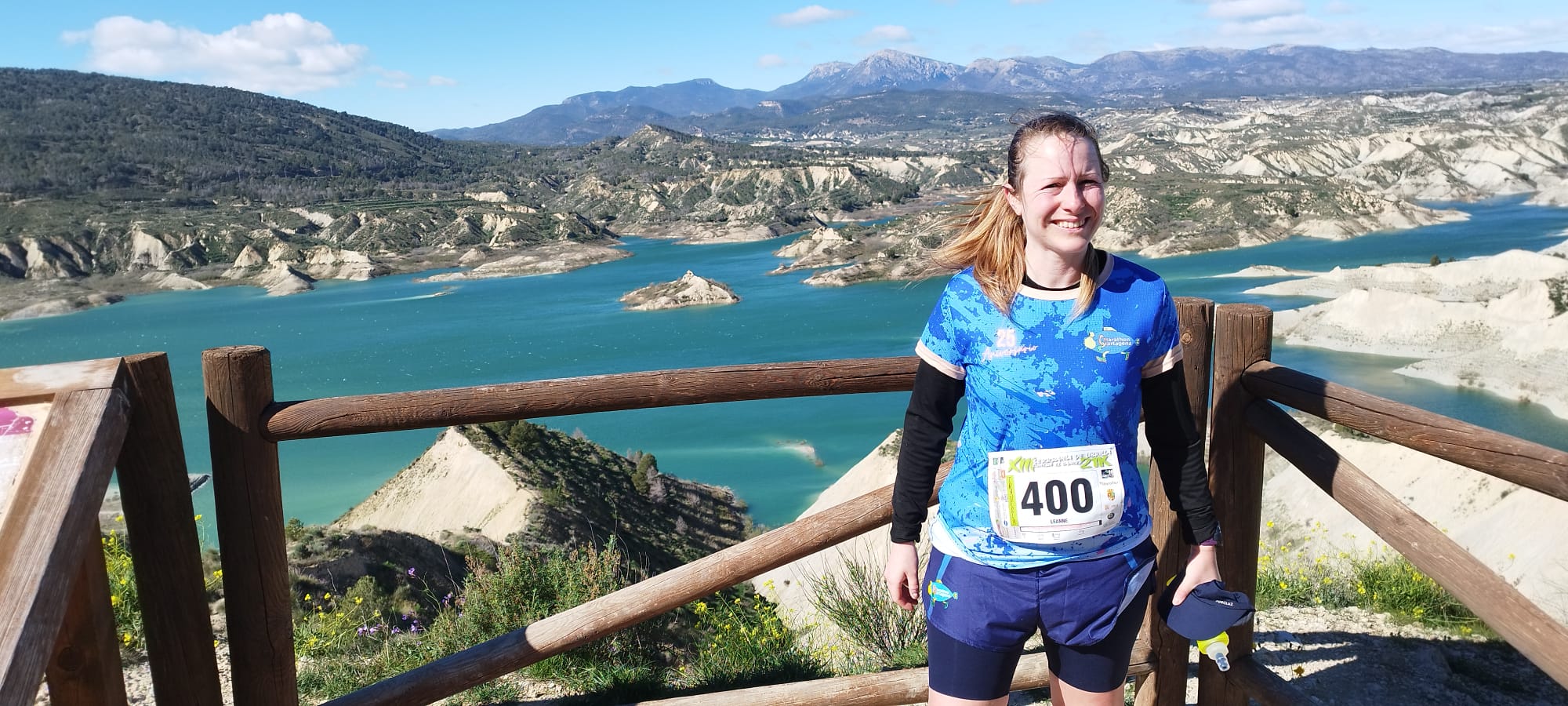 Leanne Miller estuvo en Librilla haciendo la travesía «porque todavía estoy floja», recuperándose activamente del zarpazo del oso pardo. 21k por el monte a mí no me suena a estar floja, más bien me da flojera cuando lo pienso. «La carrera de Librilla es muy bonita, son 21Km de montaña, pero por pista forestal, nada técnica», cuenta. Paisajes de postal y una peralica con un número redondo en el dorsal.