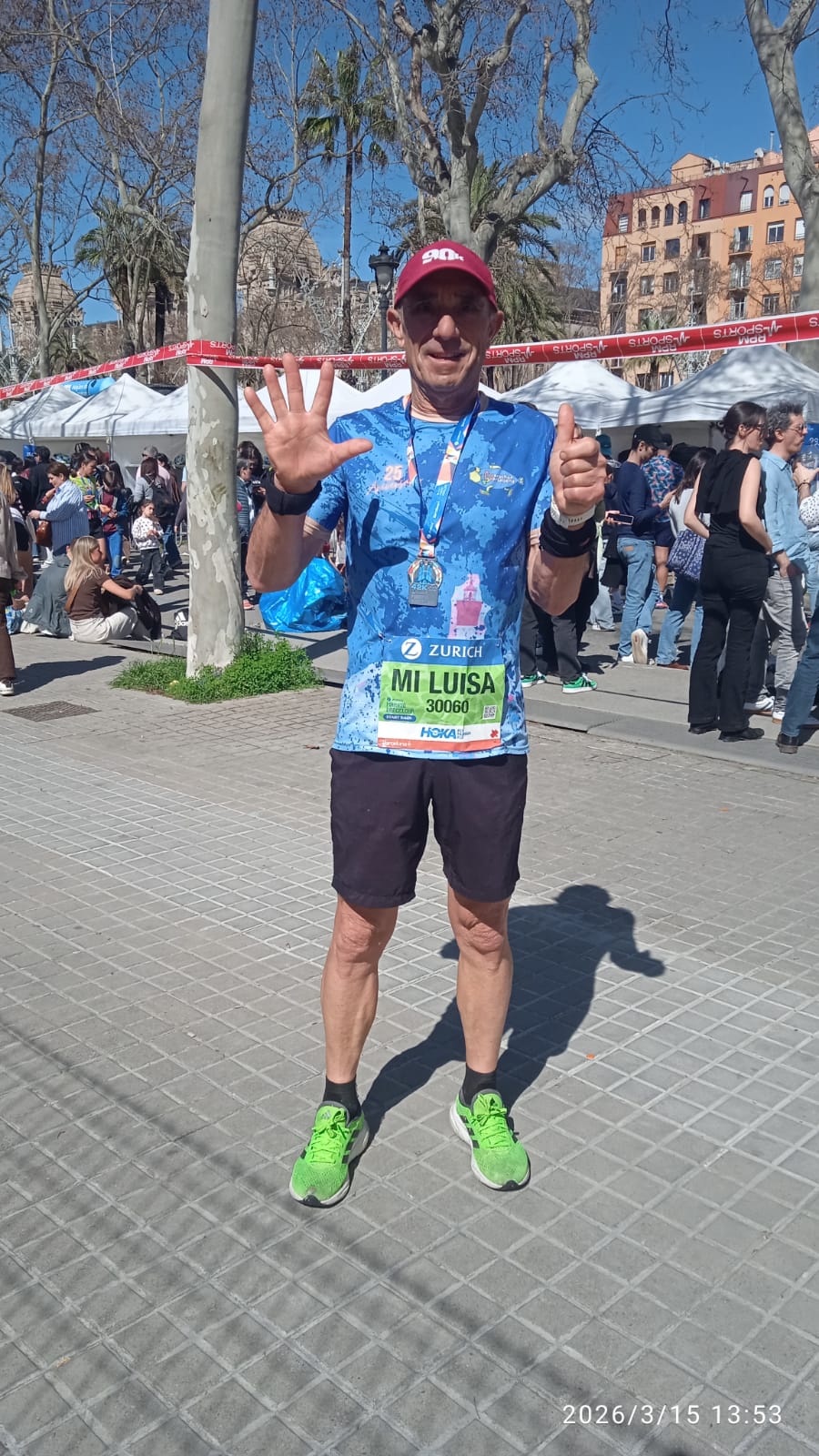 José Ramón Camero lleva el nombre de Luisa en el dorsal. Hay quien dice que detrás de cada gran hombre hay una gran mujer, que es una frase que suena bonita pero que a mí me parece una chorrada. Primero porque hay más (muchas más) grandes mujeres que hombres, al menos esa es mi experiencia. Y cuando se juntan un gran hombre y una gran mujer, eso no implica que una de las dos personas vaya detrás. Y cualquiera que haya visto a Camero y a Luisa correr juntos sabe que van al lado, que es como van las parejas que funcionan. La Zurich Marató de Barcelona ha sido este domingo la número sesenta de Camero, y la ha corrido con esas dos palabras escritas sobre la camiseta azul: Mi Luisa.