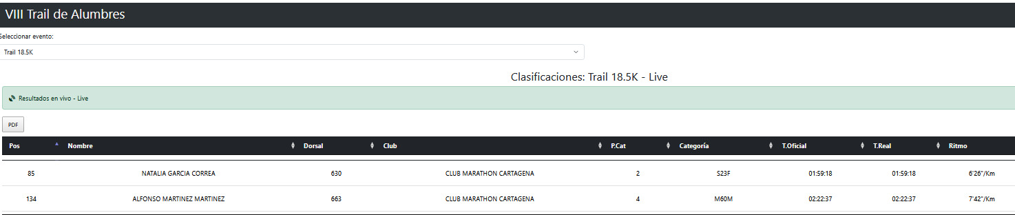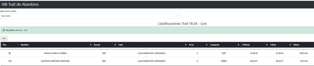 En la distancia de 18,5K, mucho ojito con Natalia García Correa: segunda en la categoría S23F con 1:59:18 a 6’26» de ritmo. Natalia lleva una temporada que pide más espacio del que cabe en una crónica, y conviene ir tomando nota de su nombre porque da la impresión de que vamos a escribirlo bastante en los próximos meses. Alfonso Martínez Martínez completó la representación del club en la Short Trail con 2:22:37 en la categoría M60M, demostrando que los sesenta son un número que solo preocupa a los que no corren.
