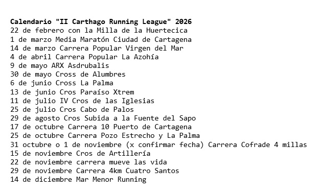 Calendario «II Carthago Running League» 2026