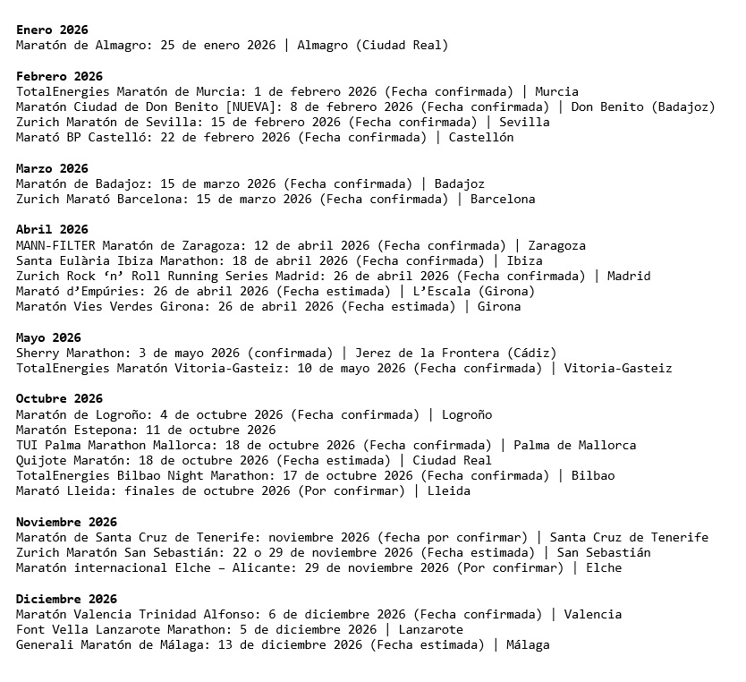 Calendario Maratones 2026