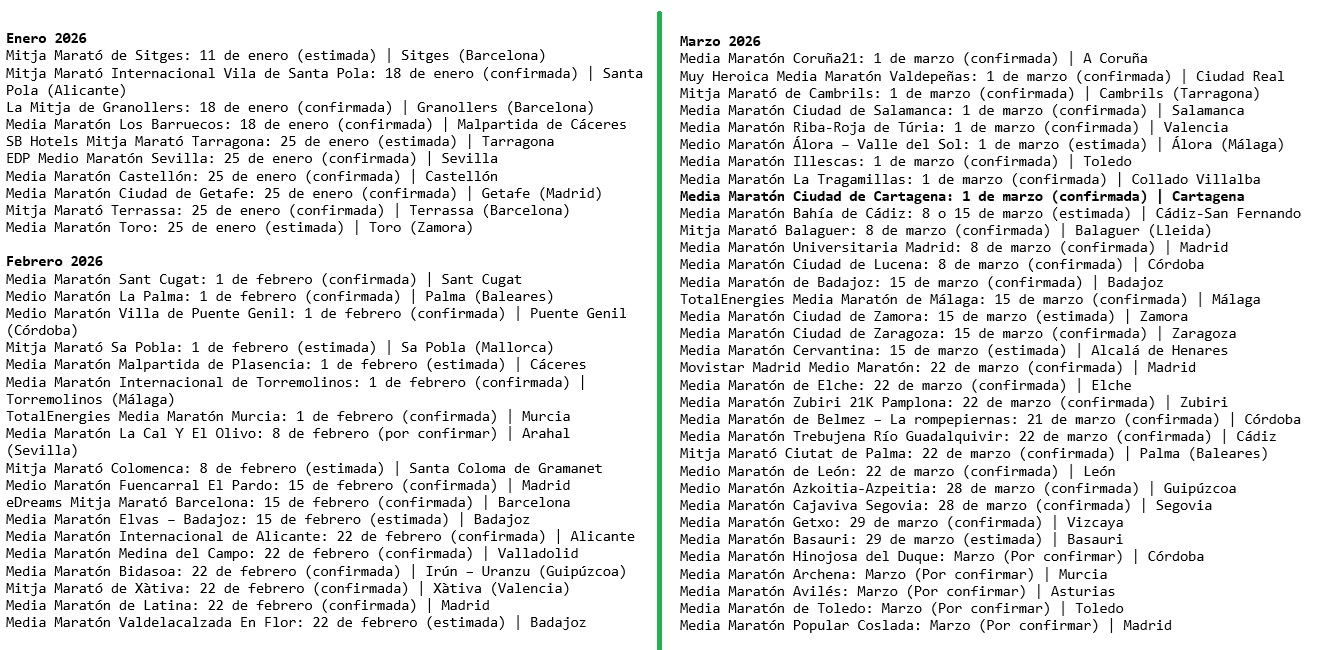 Calendario Medias Maratones Enero – Marzo 2026